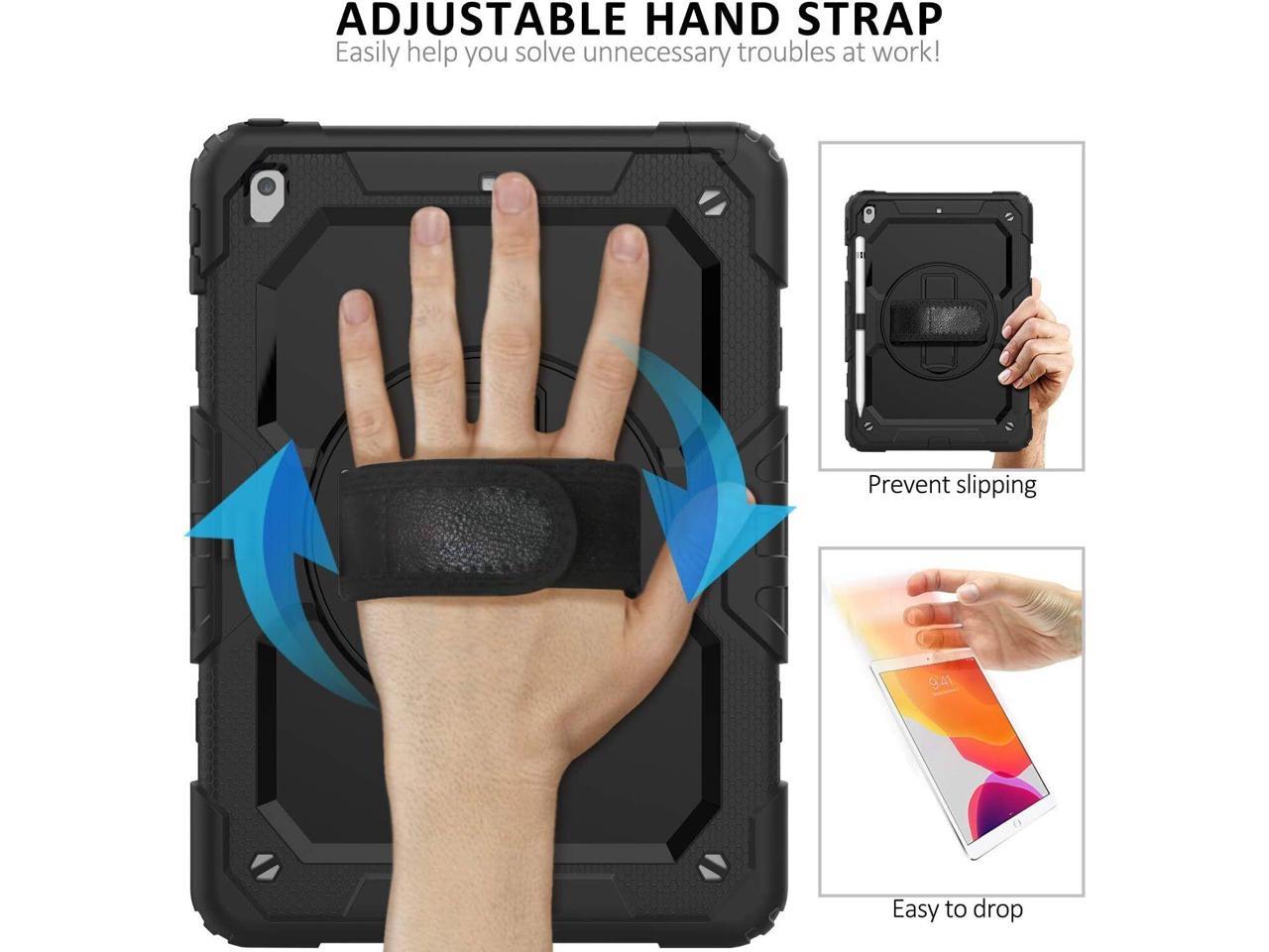 The iPad 9.7 inch 2017 2018/Air 2/Pro 9.7" case has a built-in adjustable hand strap that adjusts to the size of your hand, allowing you to use the iPad 9.7 inch 2017 2018/Air 2/Pro 9.7" without worrying about slipping out of your hand and causing damage to the device.