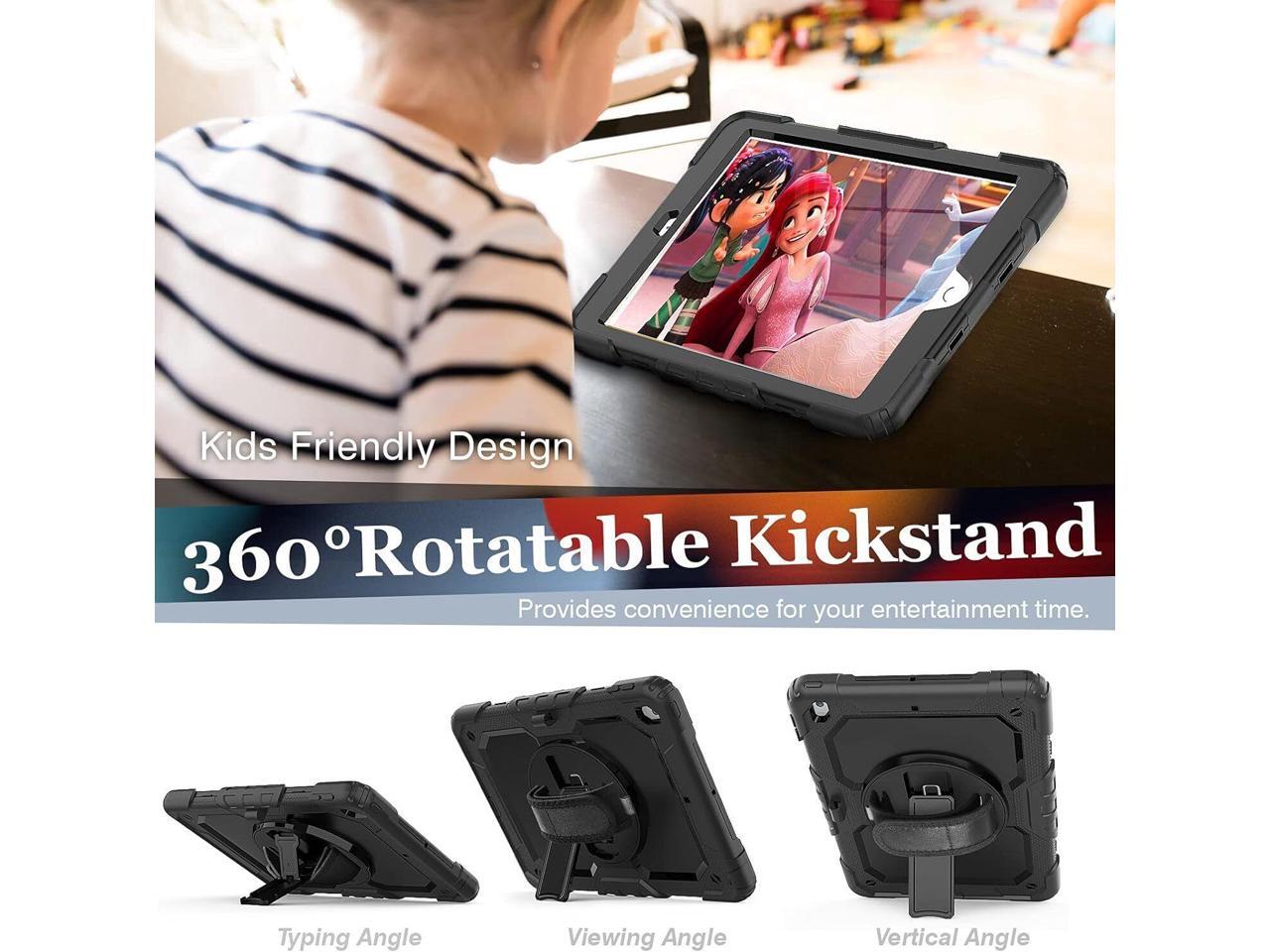 - [KICKSTAND & PENCIL HOLDER] The iPad 9.7 inch 2017 2018/Air 2/Pro 9.7" case with a rotating stand that offers multiple viewing angles, allowing you to free up your hands for studying, working, or enjoying your favorite shows. Also built-in a Pencil slot, storing and retrieving your stylus is simple and secure – say goodbye to the frustration of misplacing or losing your Stylus Pen.