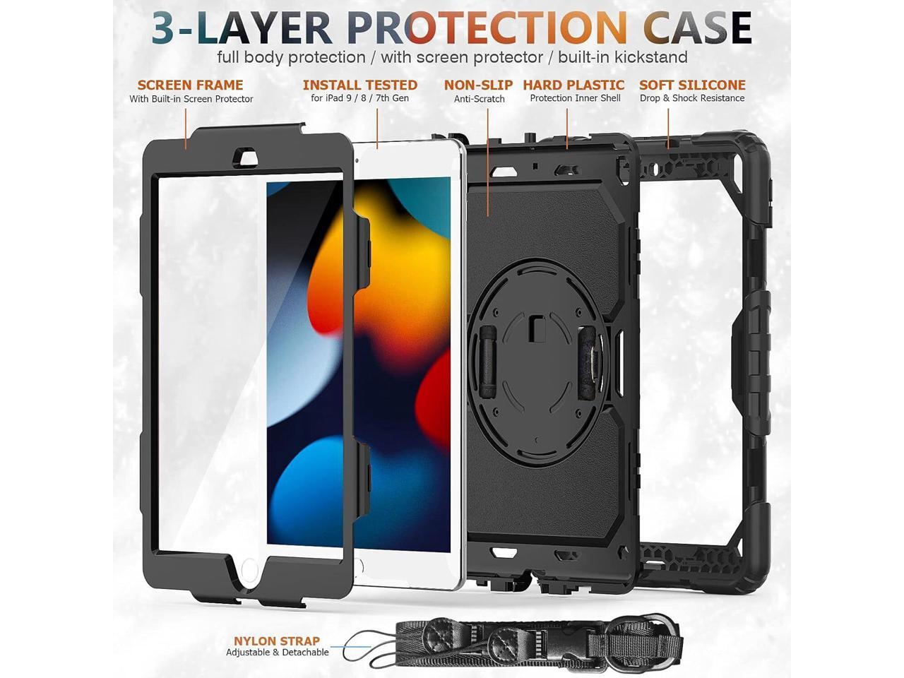 - [SHOULDER & HAND STRAP] The iPad 9.7 inch 2017 2018/Air 2/Pro 9.7" case with a detachable shoulder strap, allowing you to free up your hands outdoors and effortlessly carry your tablet wherever you go. Additionally, featuring an inner hand strap within the cover, it enables you to securely grip your device while using it, protecting against accidental slips that could lead to damage. Stay hands-free and secure with this versatile case for ultimate convenience and peace of mind.