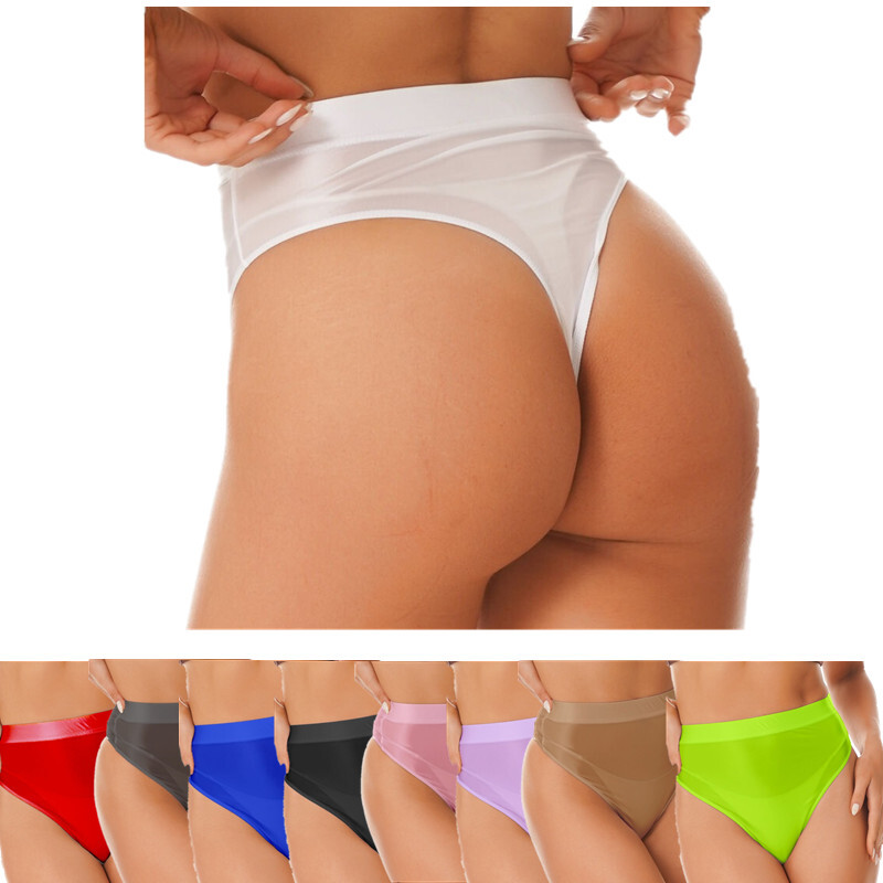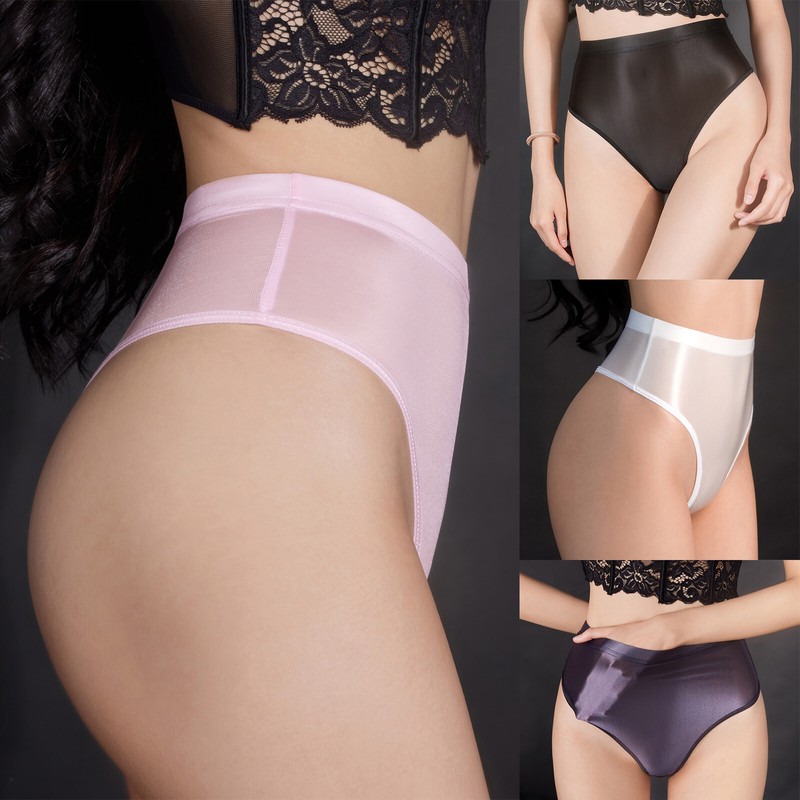Low rise with wide elastic waistband, shiny surface, pull on closure.