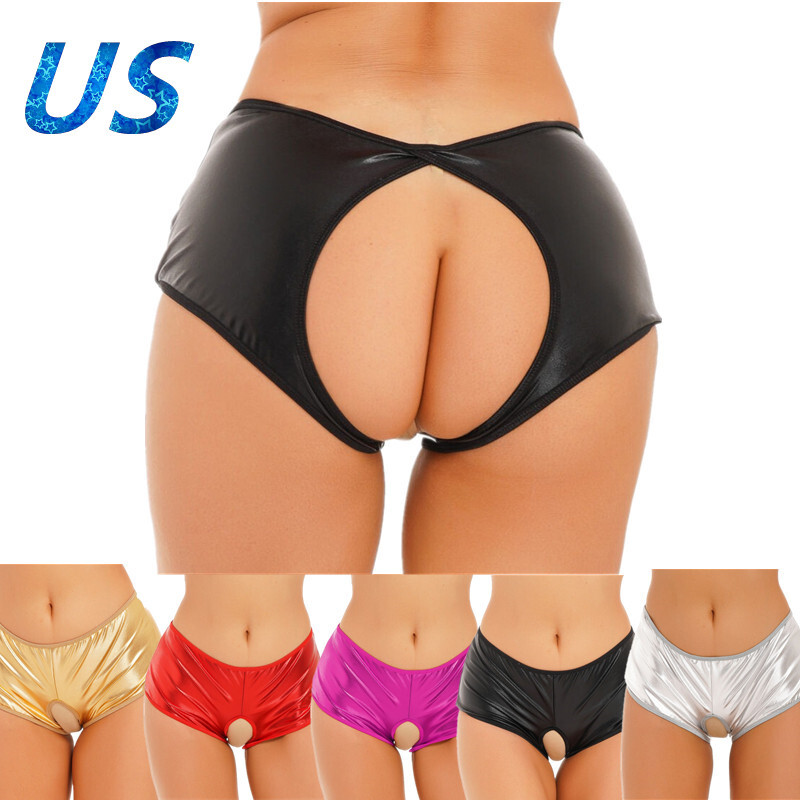US Womens Shiny Metallic Low Waist Booty Shorts Stretchy Hot Pants Dance Bottoms