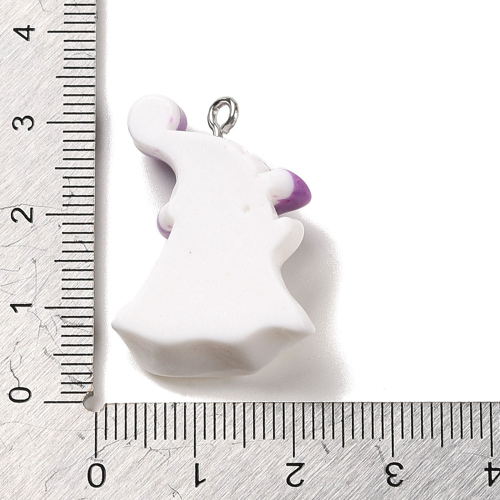 Opaque Resin Pendants, Halloween Charms with Platinum Tone Alloy Loops, White, Ghost with Witch Hat