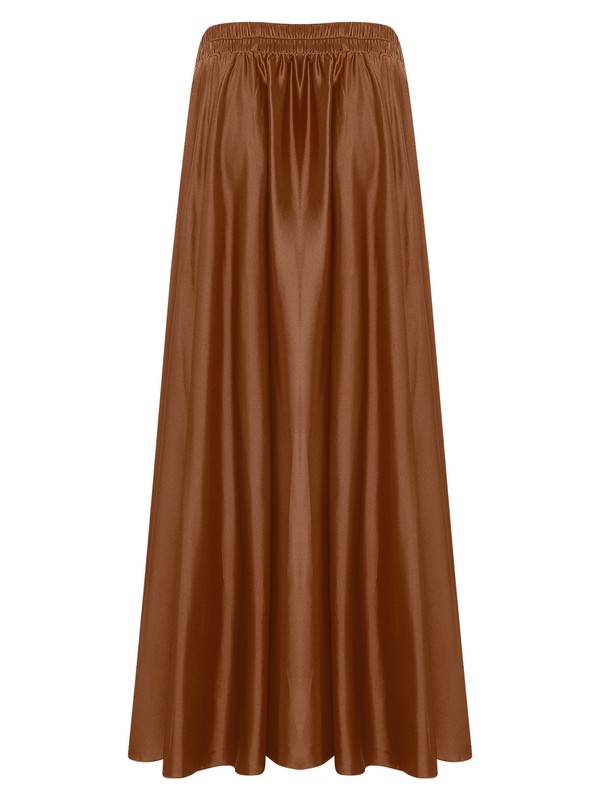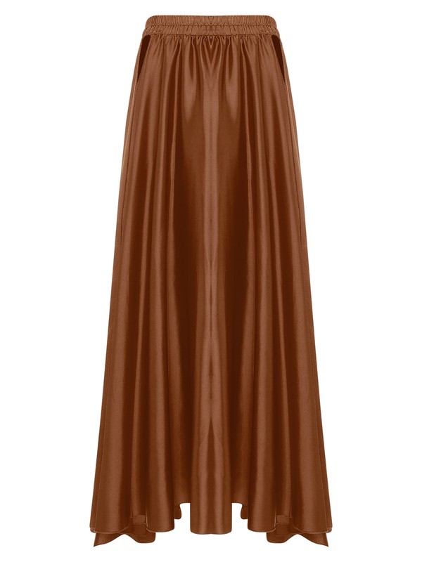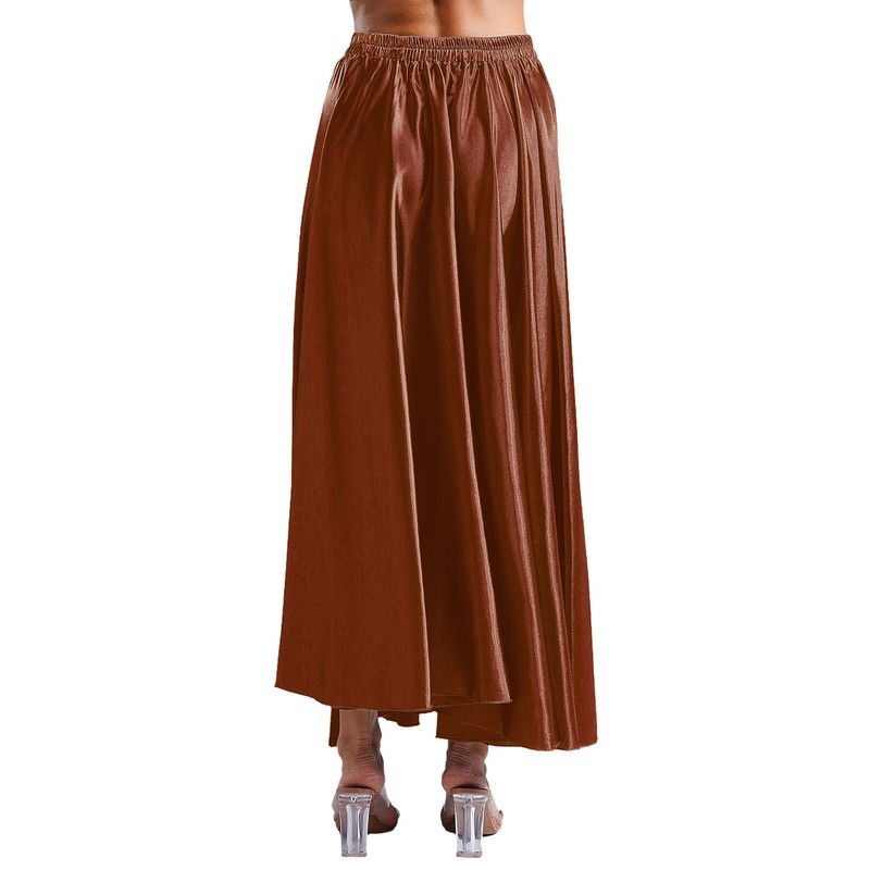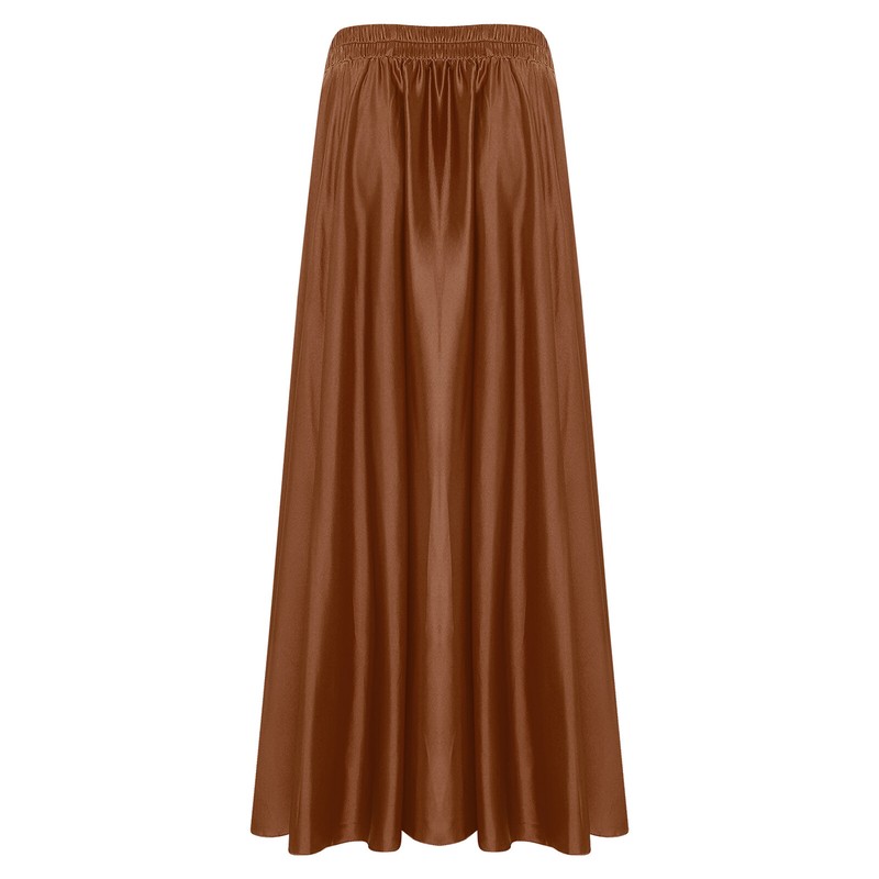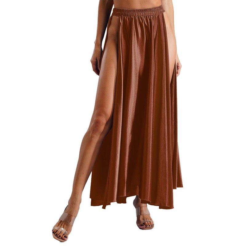 Designed with elastic waist, split on both sides, solid color and maxi length, flowy skirt is perfect for female to dance and perform.