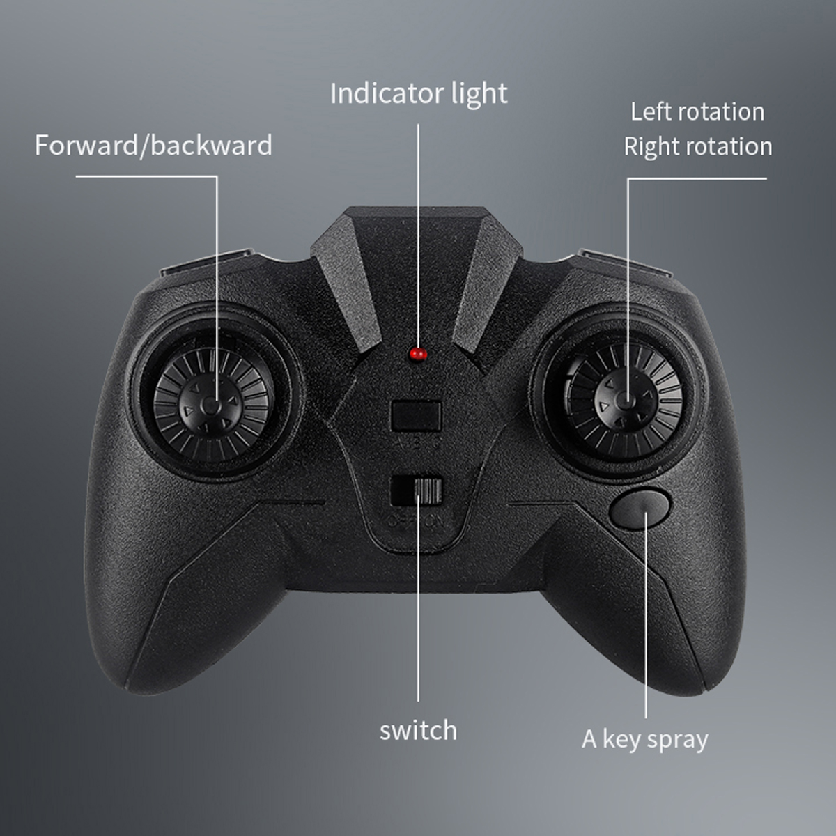 -- 2.4G 5-pass remote control, forward and backward, left and right rotation, flip drift, lights, one key spray;