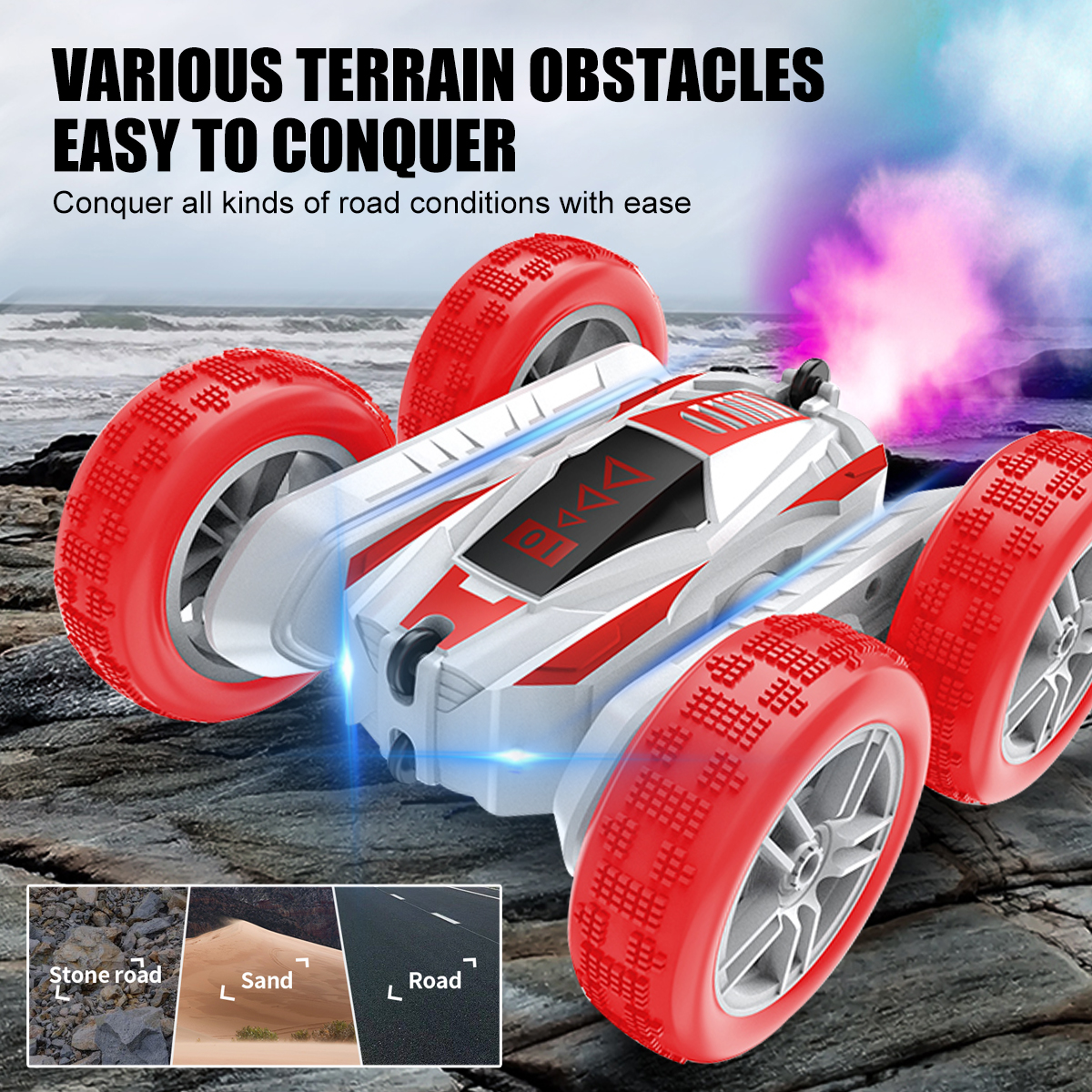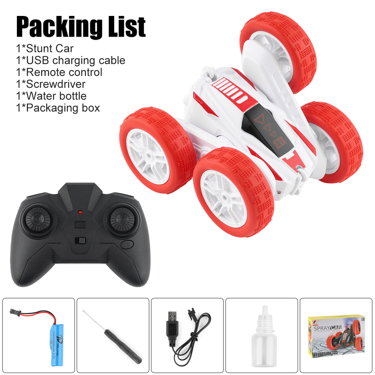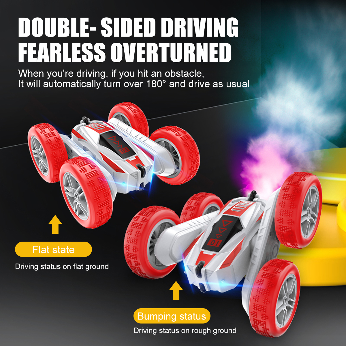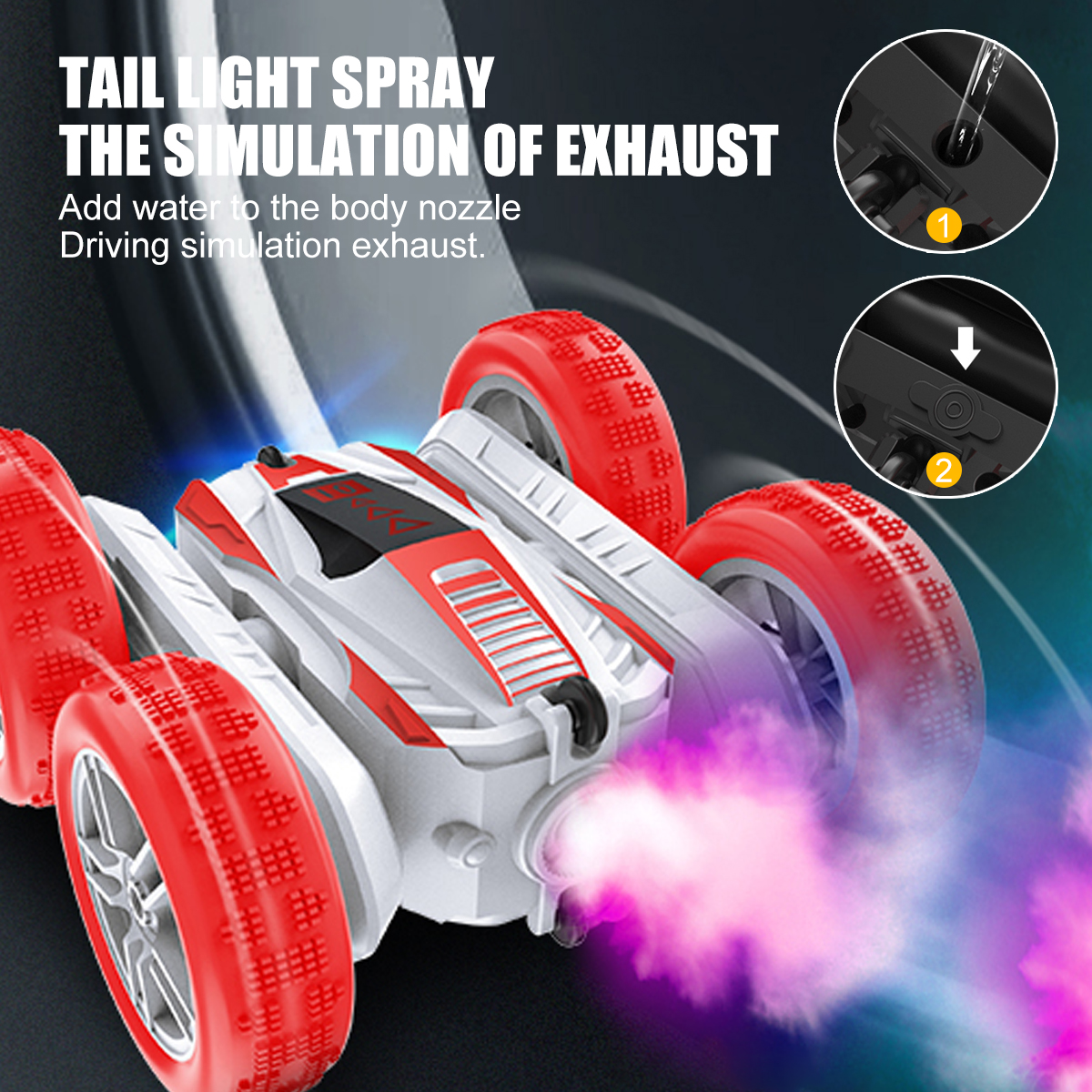 -- 4WD Double Sided Stunt RC Car Spray Drift Racing 2.4G RC Tumbler.