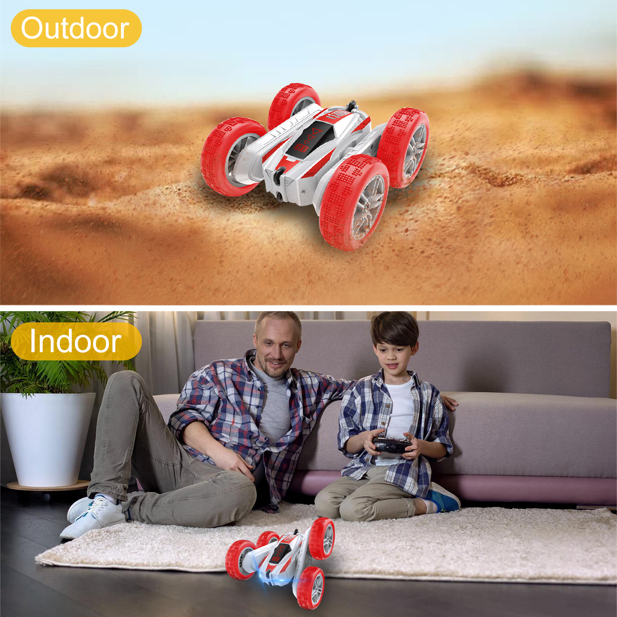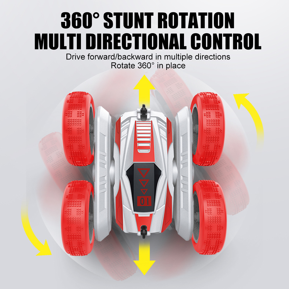 【360°rotation】360°stunt rotation multi-directional control, stunt car can be forward/backward multi-directional travel can also be in situ 360°rotation;