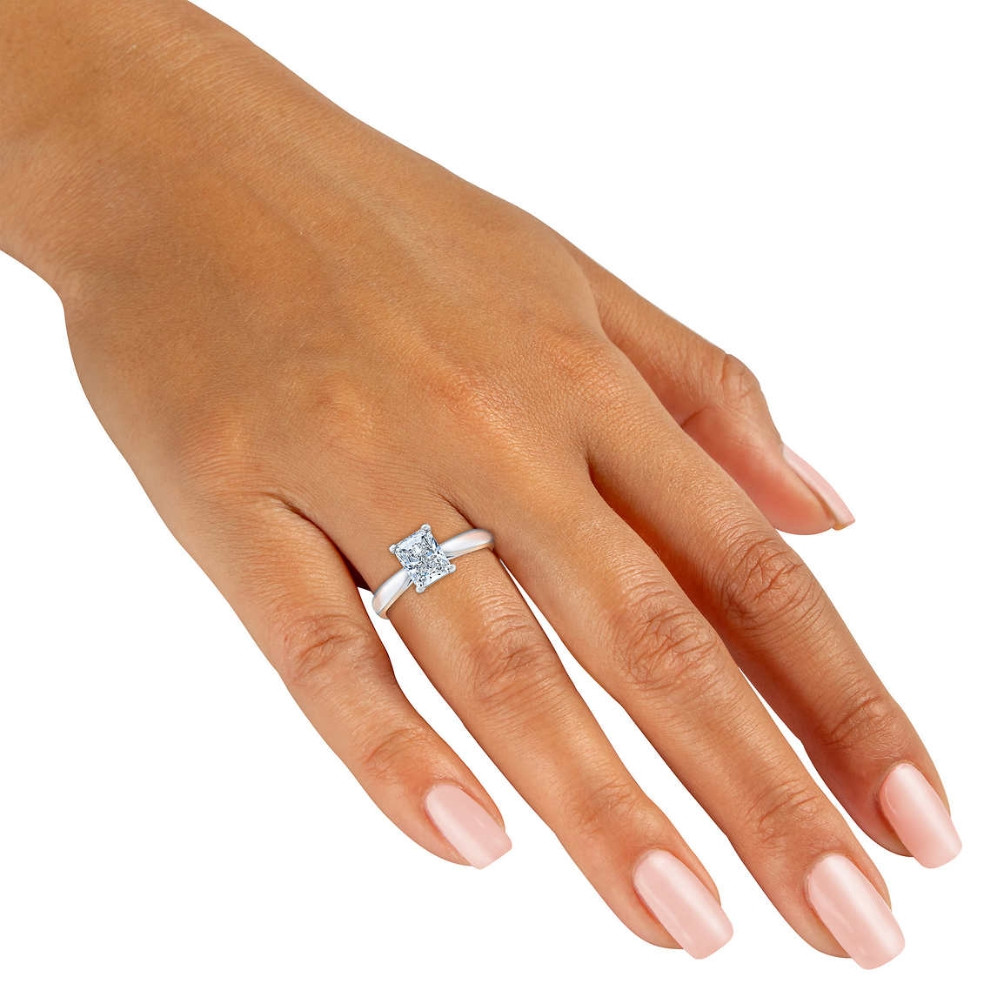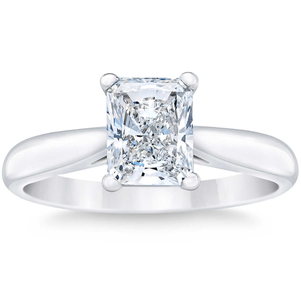 F/VS 1Ct Radiant Cut Solitaire Lab Grown Diamond Engagement Ring in Platinum
