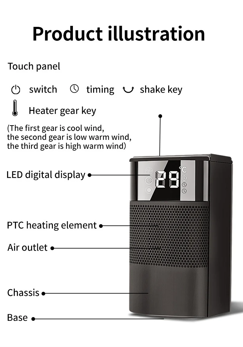Product certification: CE ROHS FCC UL PSEHigh-end Fan Heater Small Solar Heater Mini Bathroom Power Saving Heater
