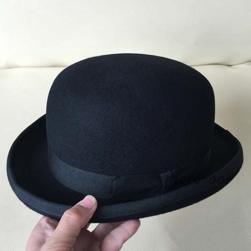 100% Wool Men's Black Bowler Hat Gentleman Hat Fedora Casual S/M/L/XL New