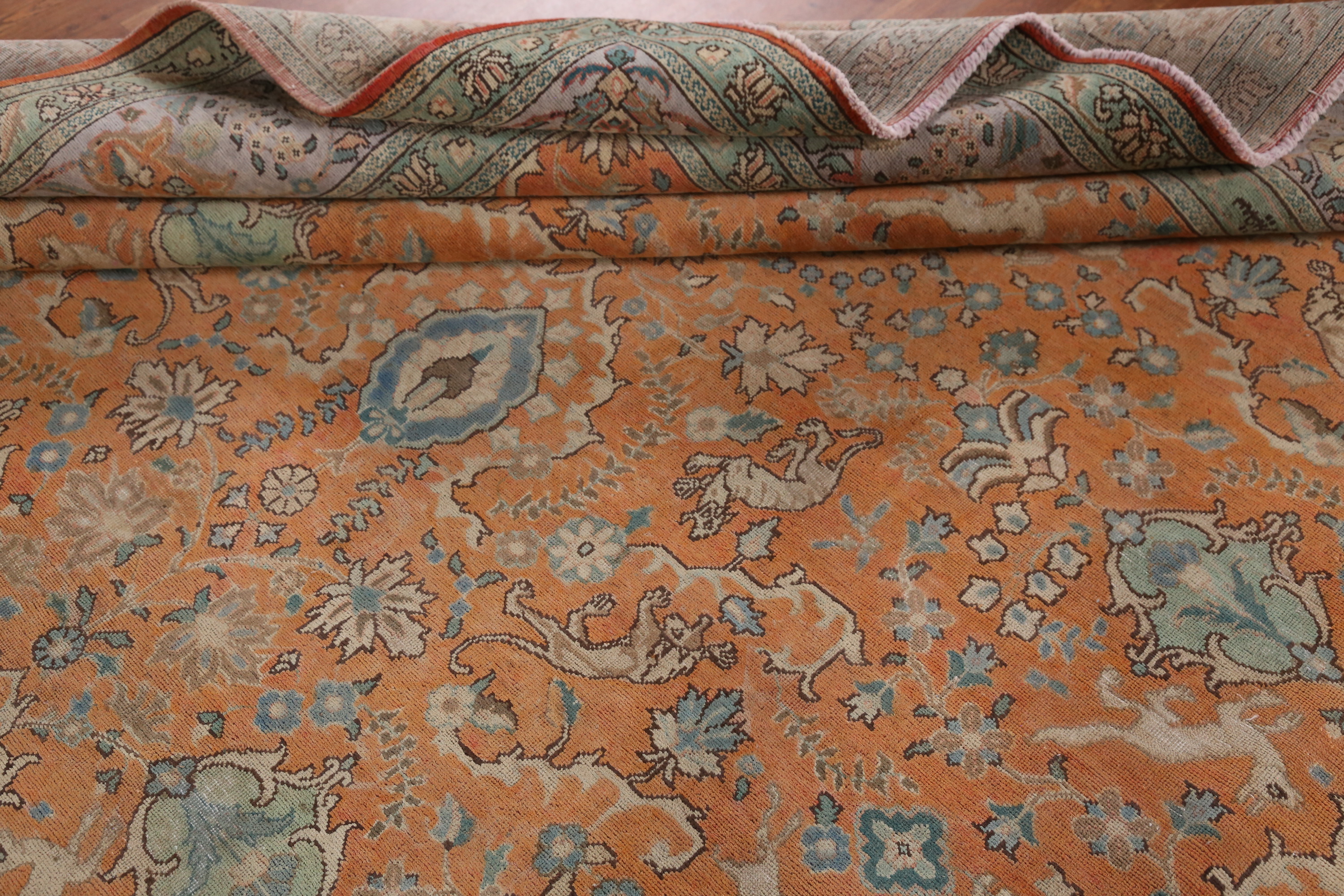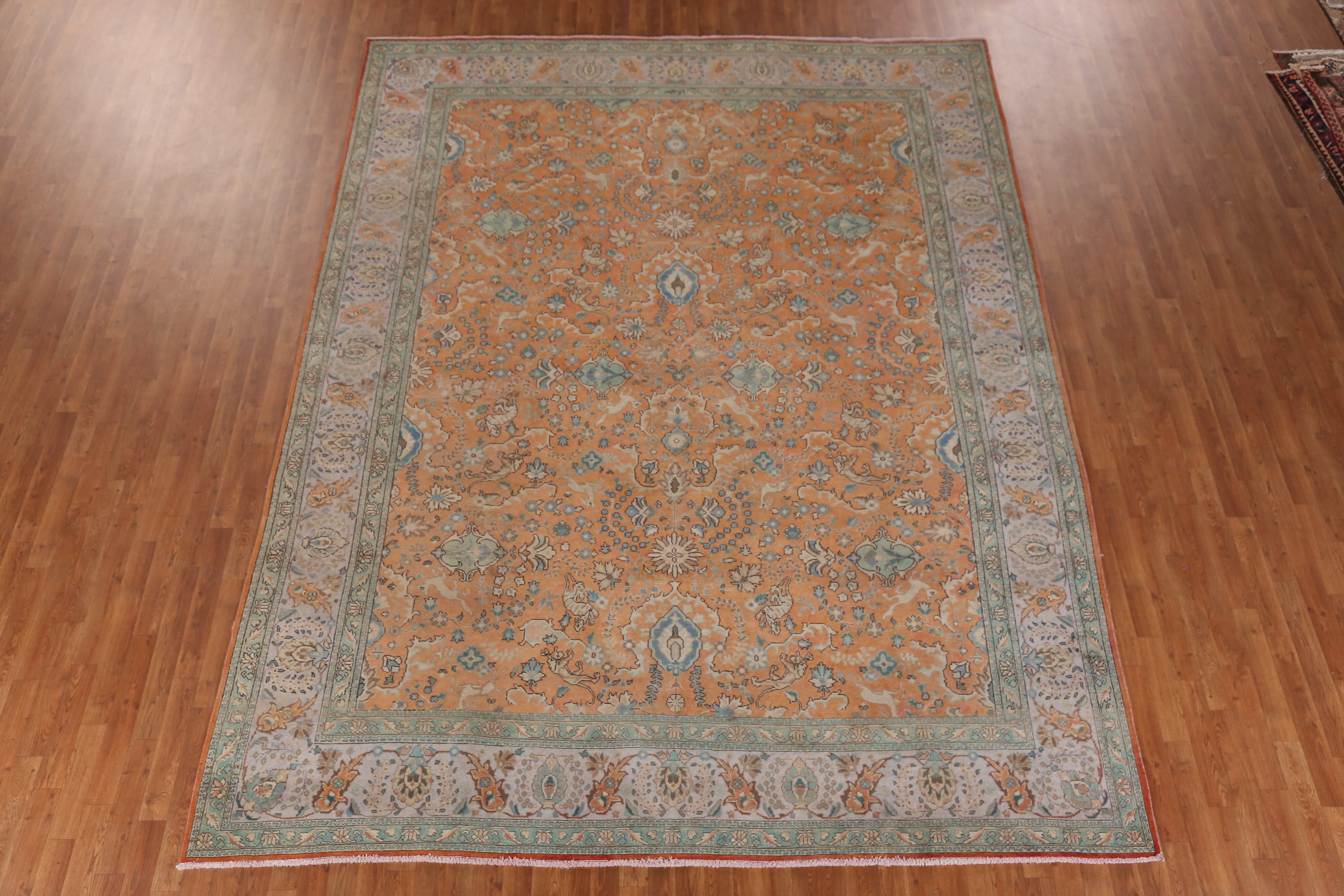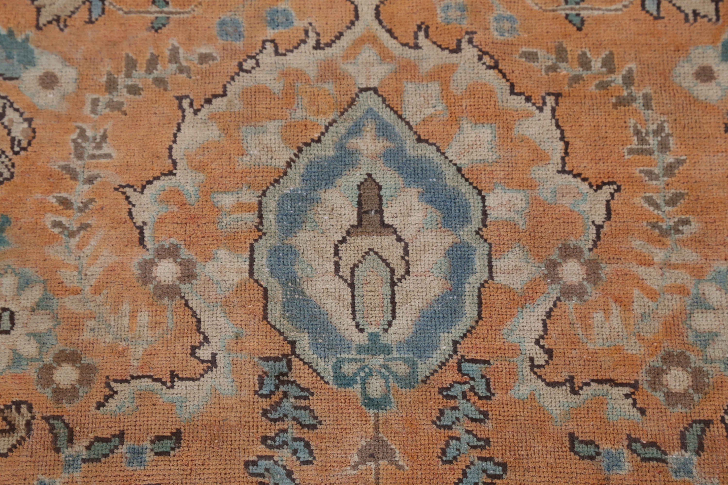 Orange Wool Floral Vintage Hand-made Room Size Area Rug Traditional Carpet 9x12