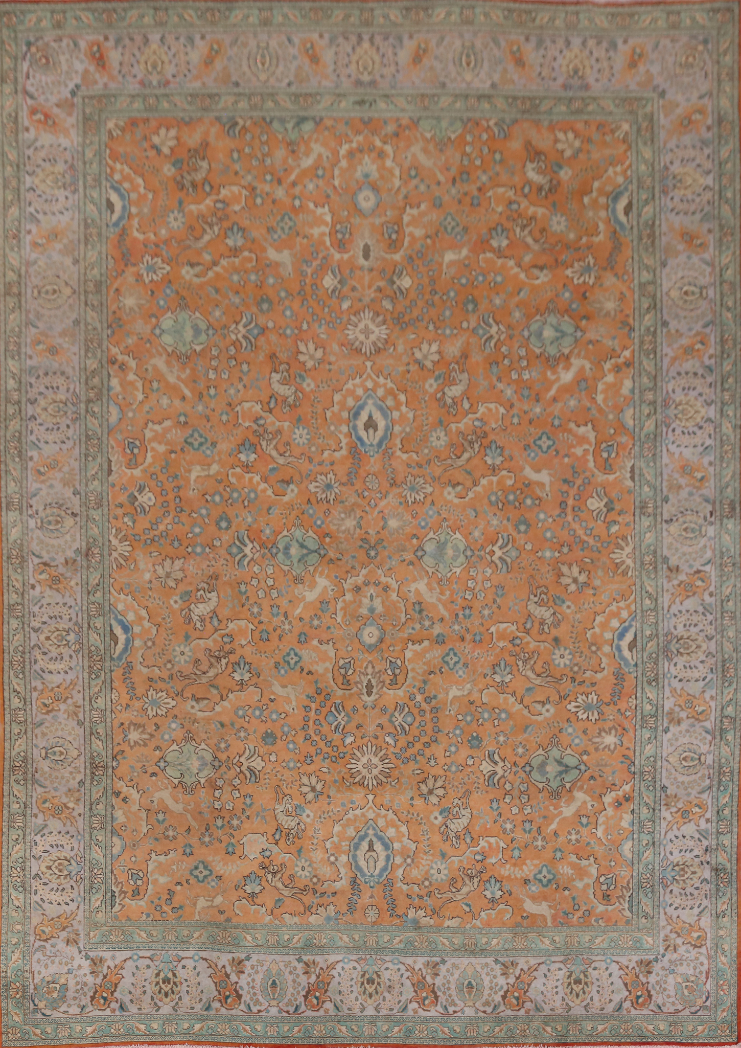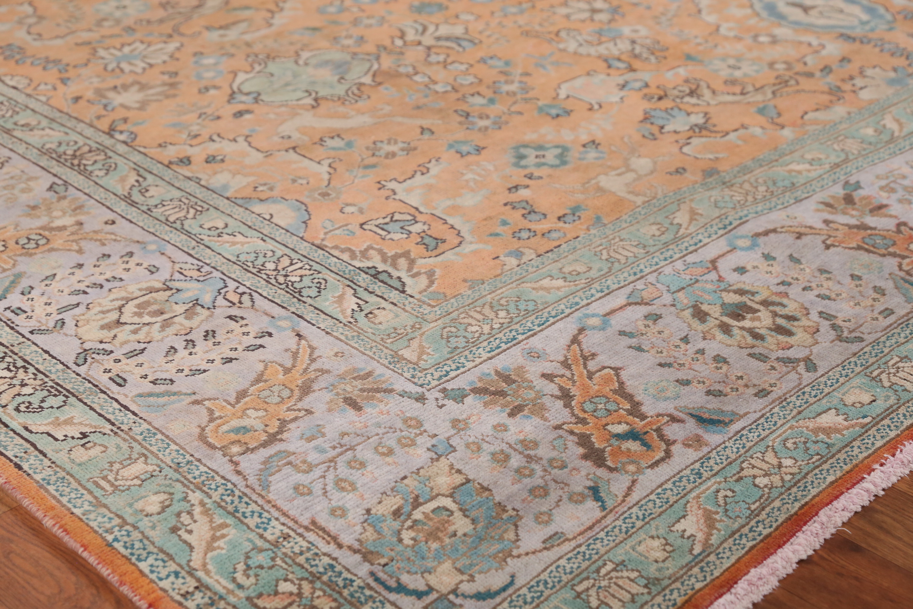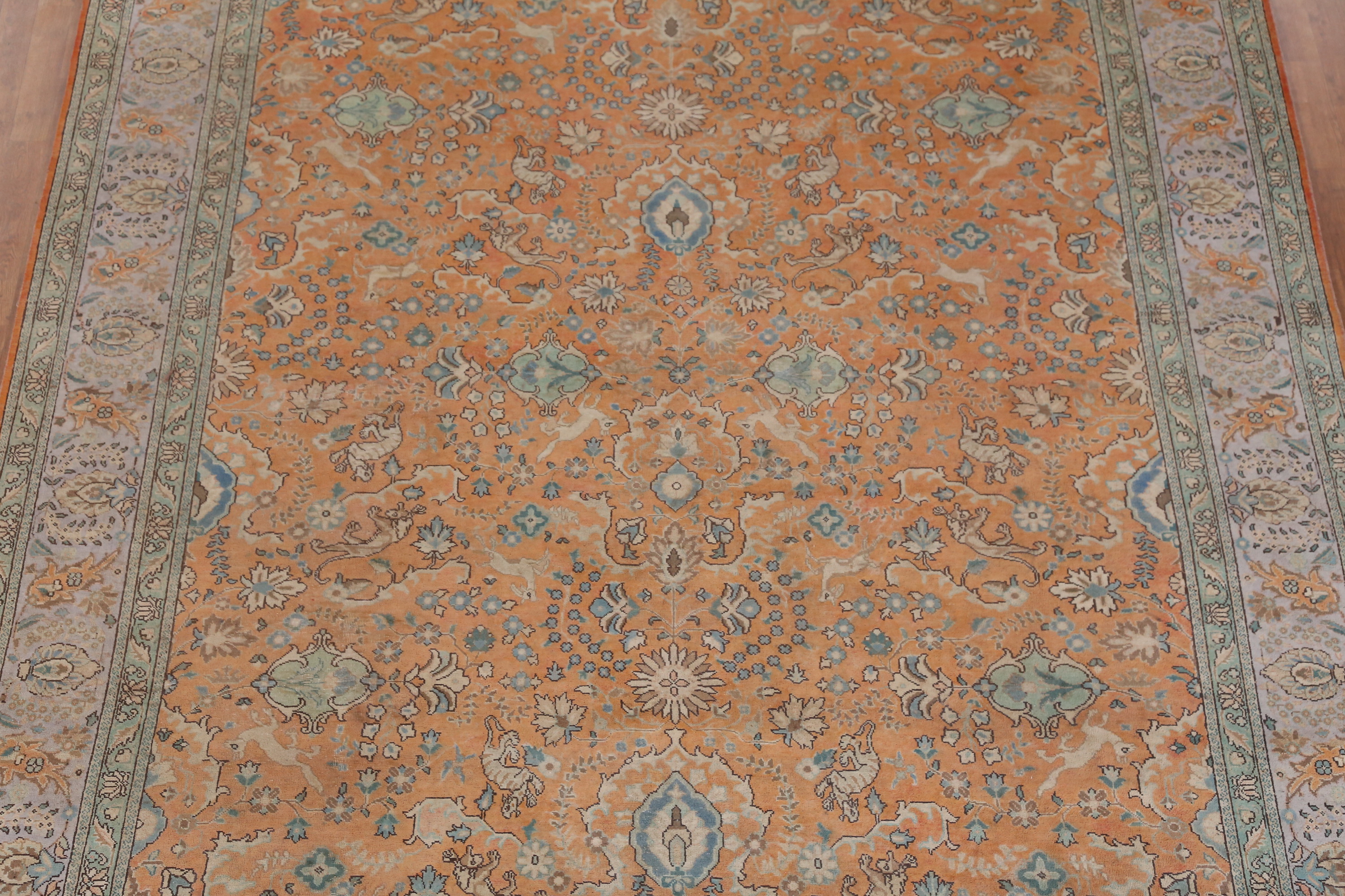 Orange Wool Floral Vintage Hand-made Room Size Area Rug Traditional Carpet 9x12