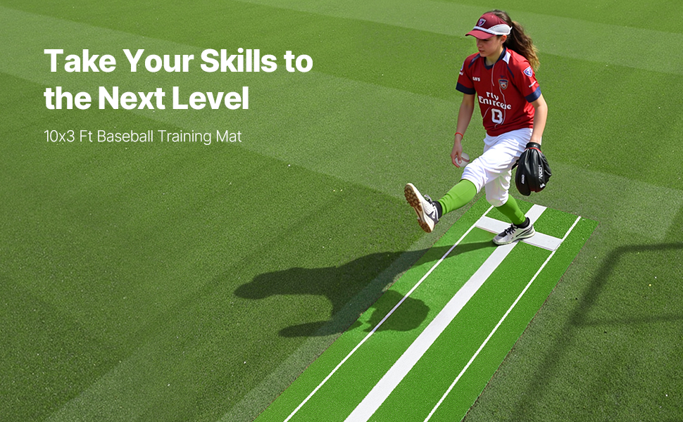 Standard Size: This softball pitching mat measures 10x3 feet, coming with a inlaid pitching rubber and stride lines for enhanced pitching power that can assist you in improving accuracy
