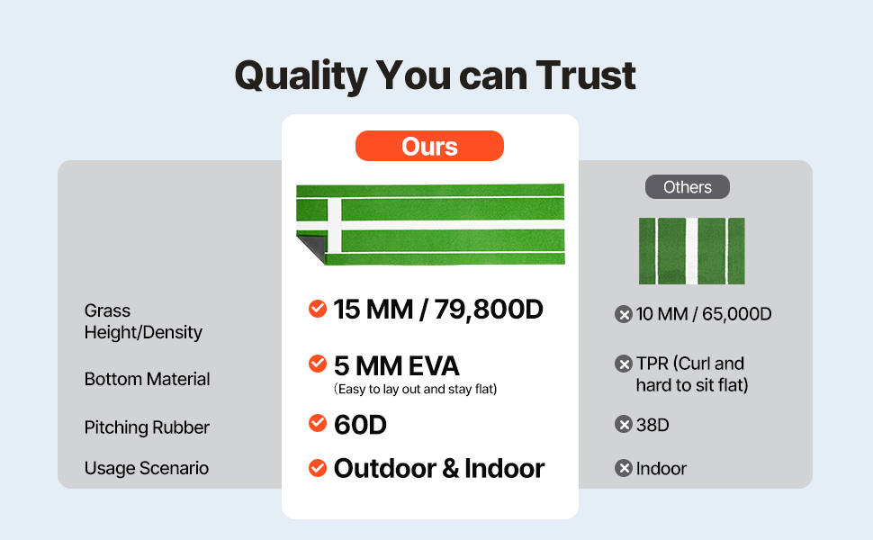 Slip-Resistant Bottom: Designed with a 5mm EVA backing, this pitching mat enhances friction to prevent slipping and reduce the chances of falls. Additionally, it guards your floor from scratches and damage during training