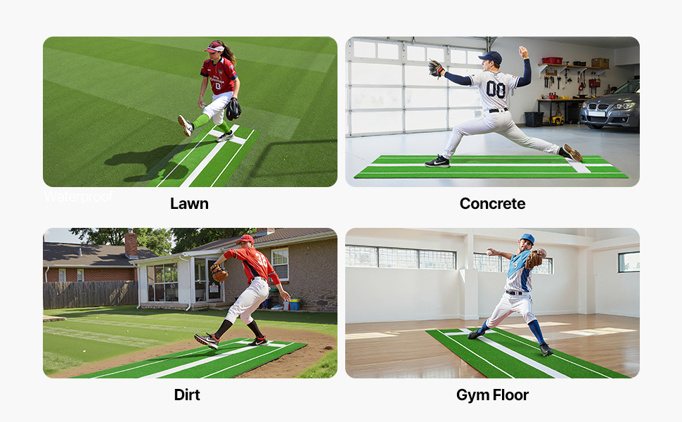 Versatile Usage: This softball pitching mat can be used both indoors and outdoors. It's ideal for training centers, home garages, playing fields, batting cages, gyms, and backyard practice