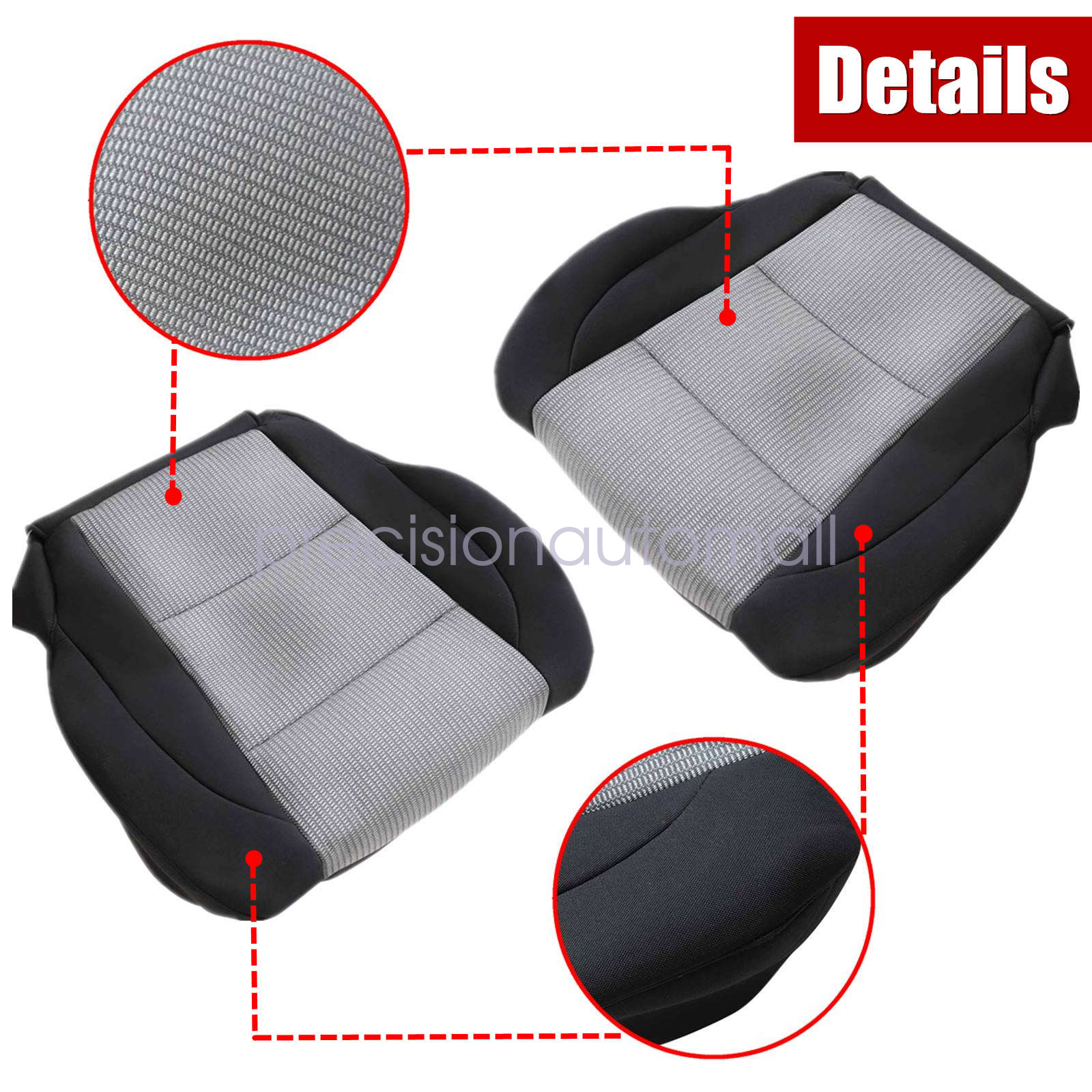For 2005-2007 Nissan Titan Front Driver & Passenger Bottom Replacement Cloth Seat Cover Black & Gray