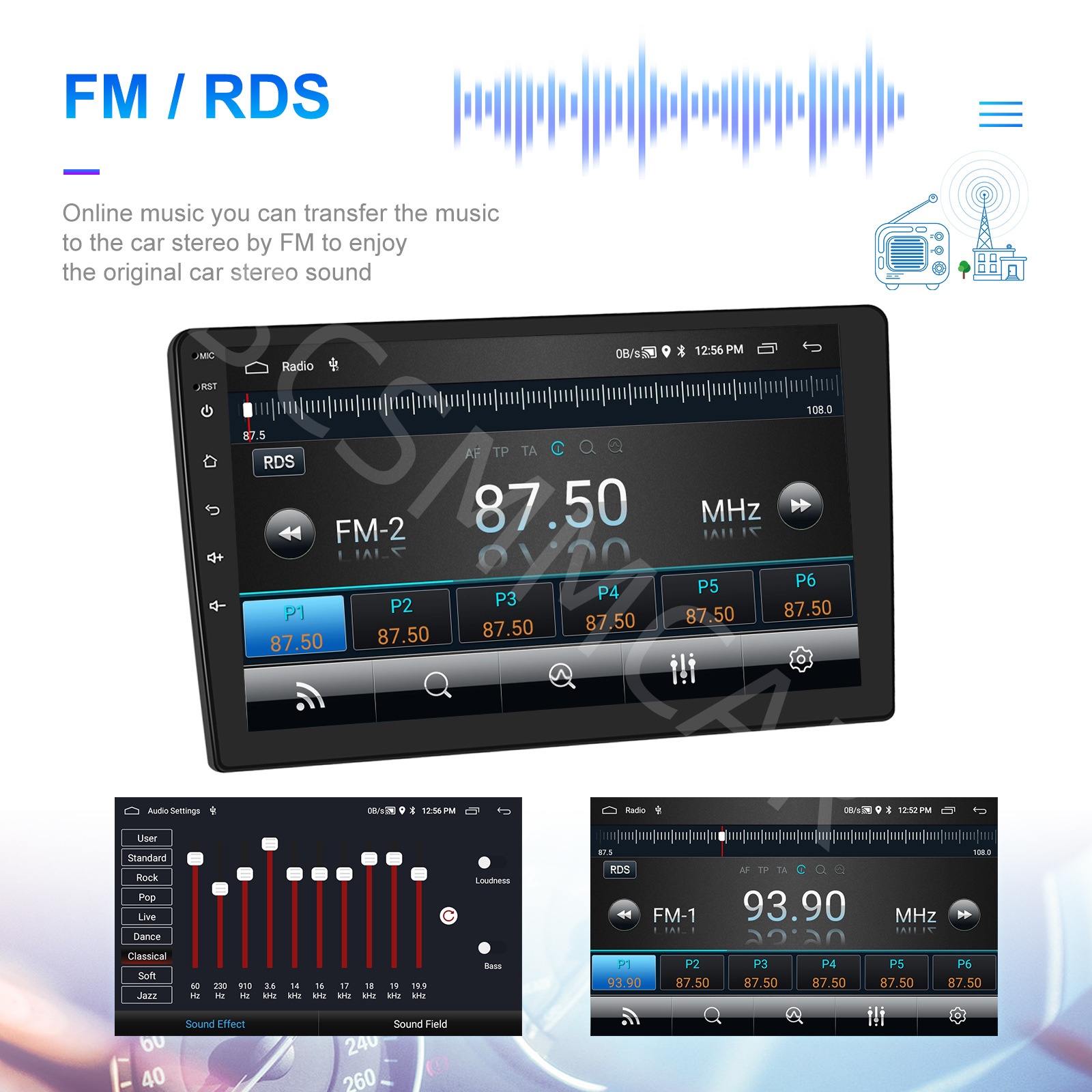 ● FM Radio: Online music you can transfer the music to the car stereo by FM to enjoy the original car stereo sound,with 18 preset stations