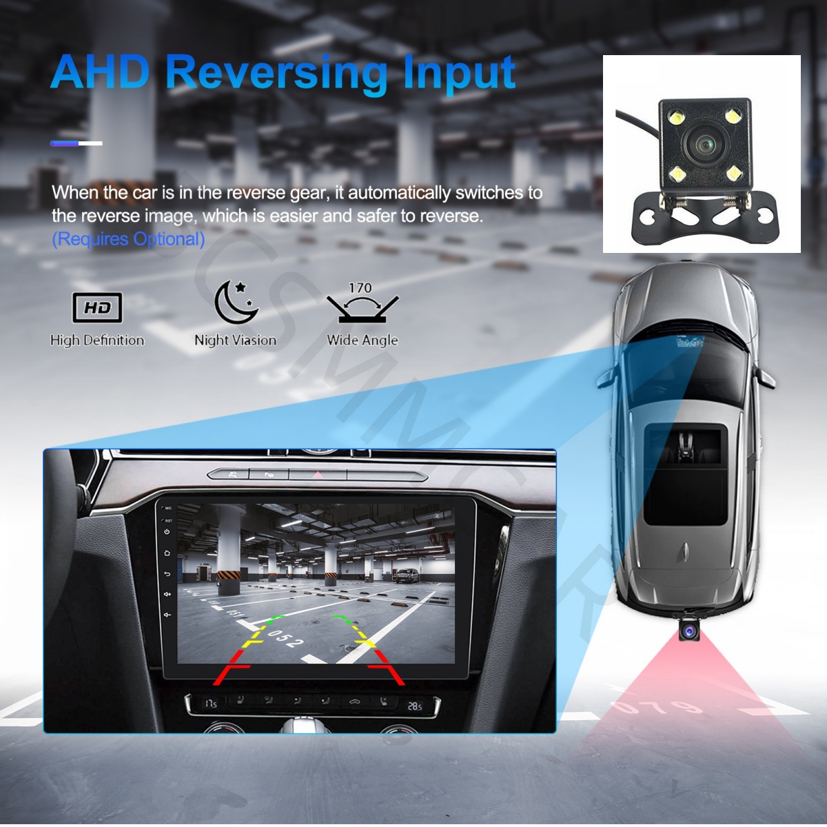 ● Rear camera: support AHD high-definition 720P camera image input,you can switch between CVBS and AHD simply by choosing in the settings(included 4LED Camera)