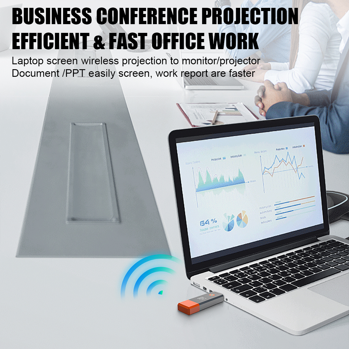 (2) HD display: the same screen device supports up to 1080P, 60Hz HD signal transmission, smooth transmission of file pages, video playback, pictures;