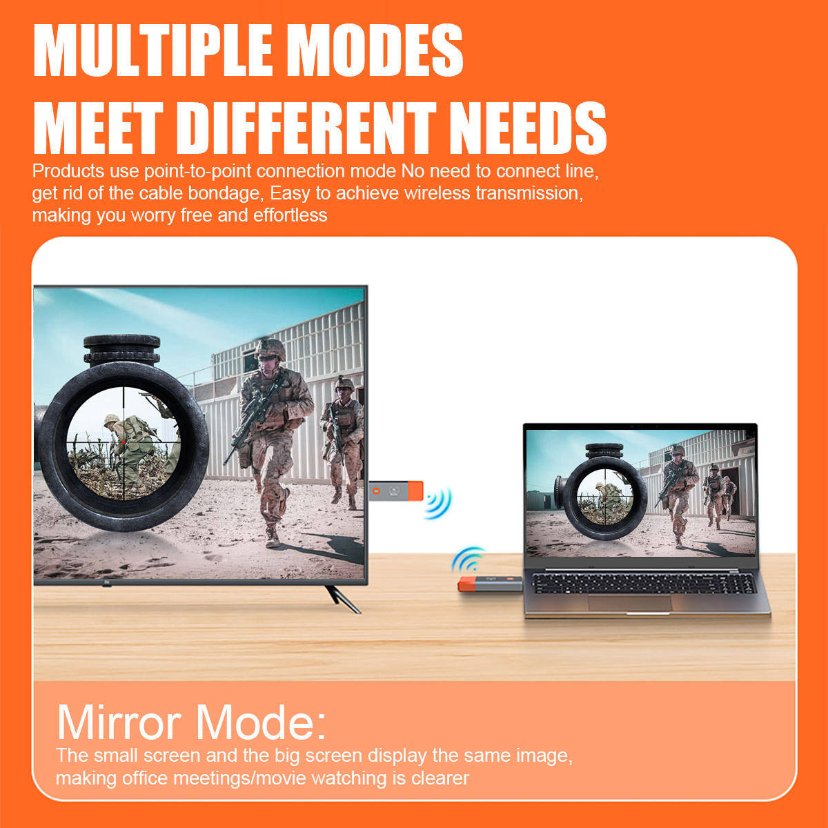 (3) Between the transmitter and receiver through 5G signal transmission, point-to-point network, stable transmission, no lag and no delay (no additional network required);(4) Simple to use: just connect the transmitter HDMI to the transmitting device, the receiver connects to the display receiving end and plugs in the USB power supply to automatically cast the screen, no need to manually match; no network support required;