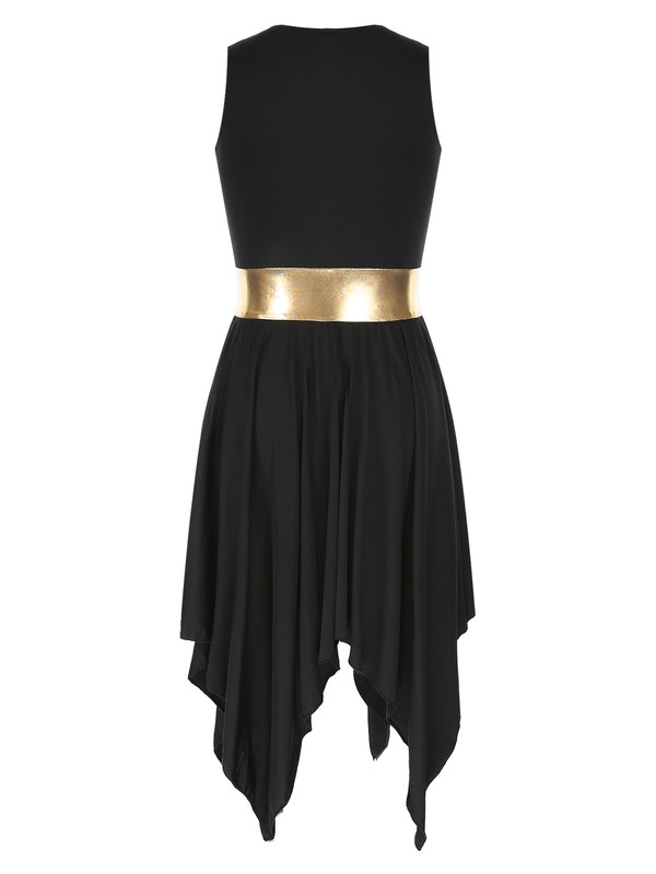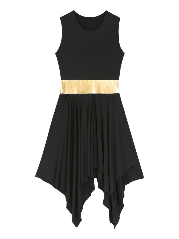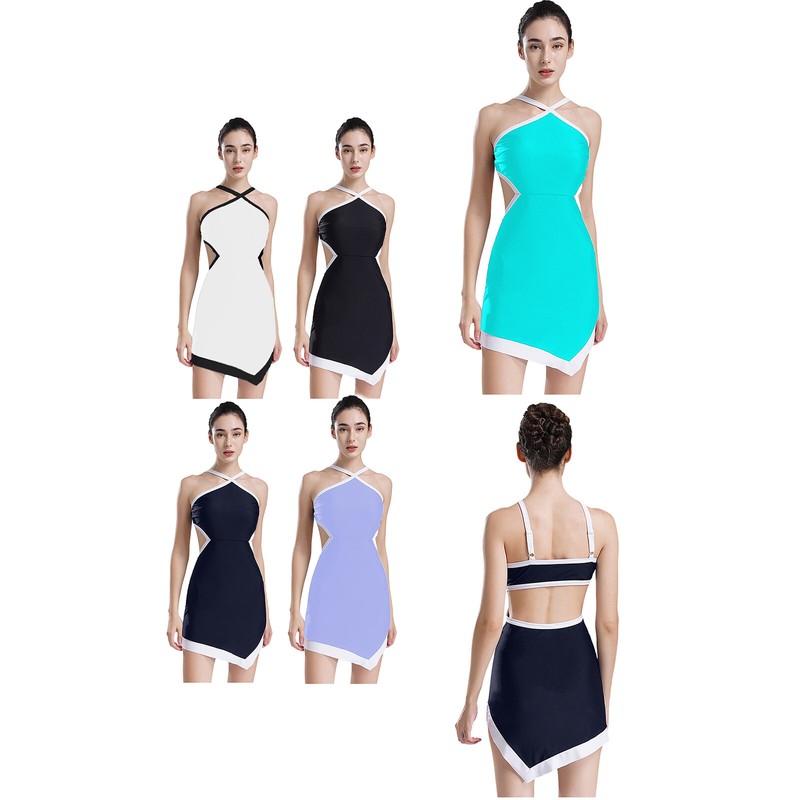 Womens Color Block Sleeveless Dance Dress Asymmetrical Hem Dresses.