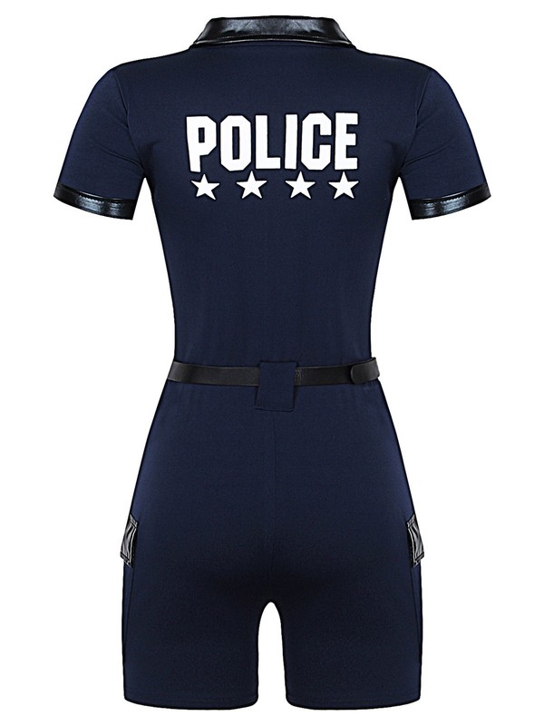 Policewomen outfit includes romper, faux leather belt and purse, 3-piece a set.