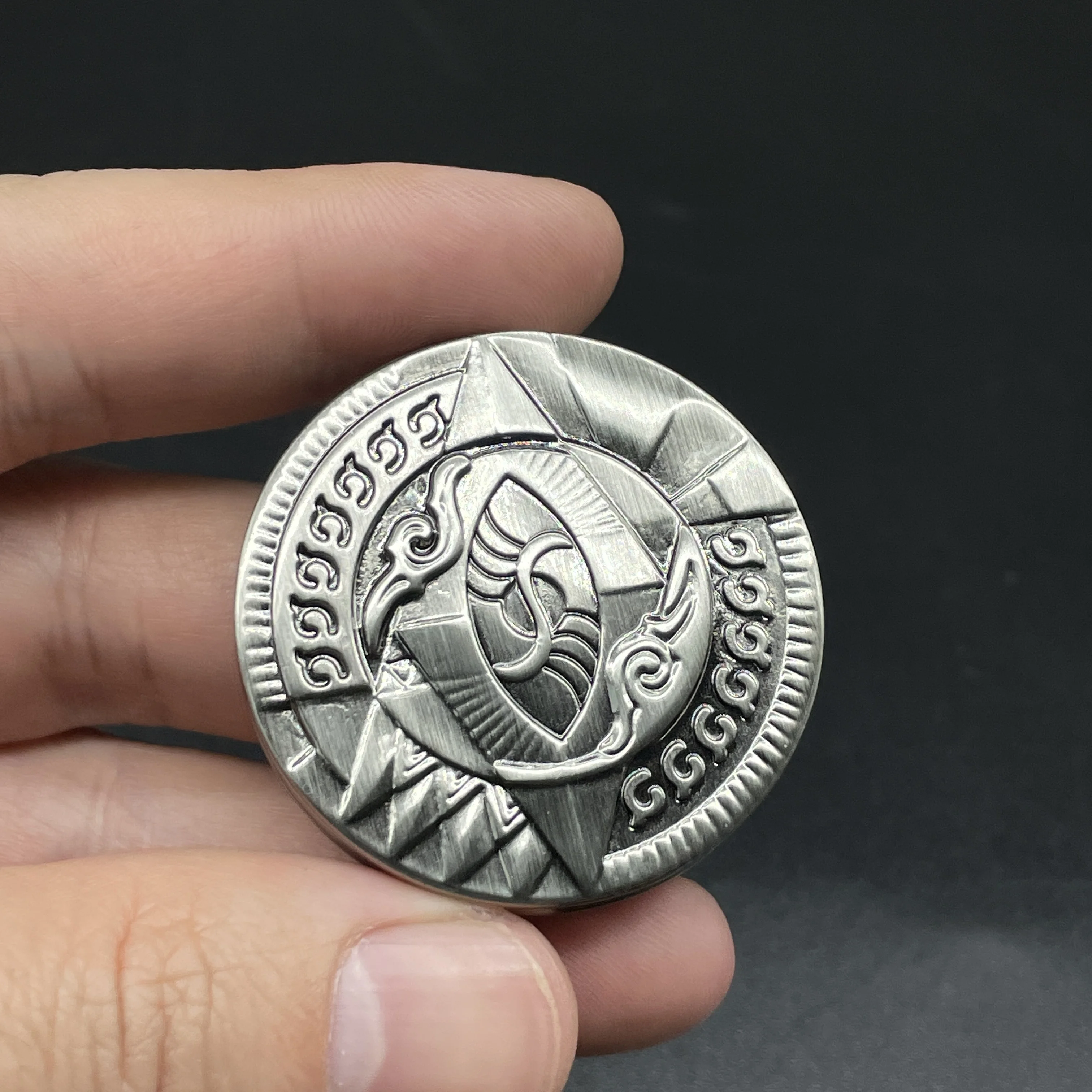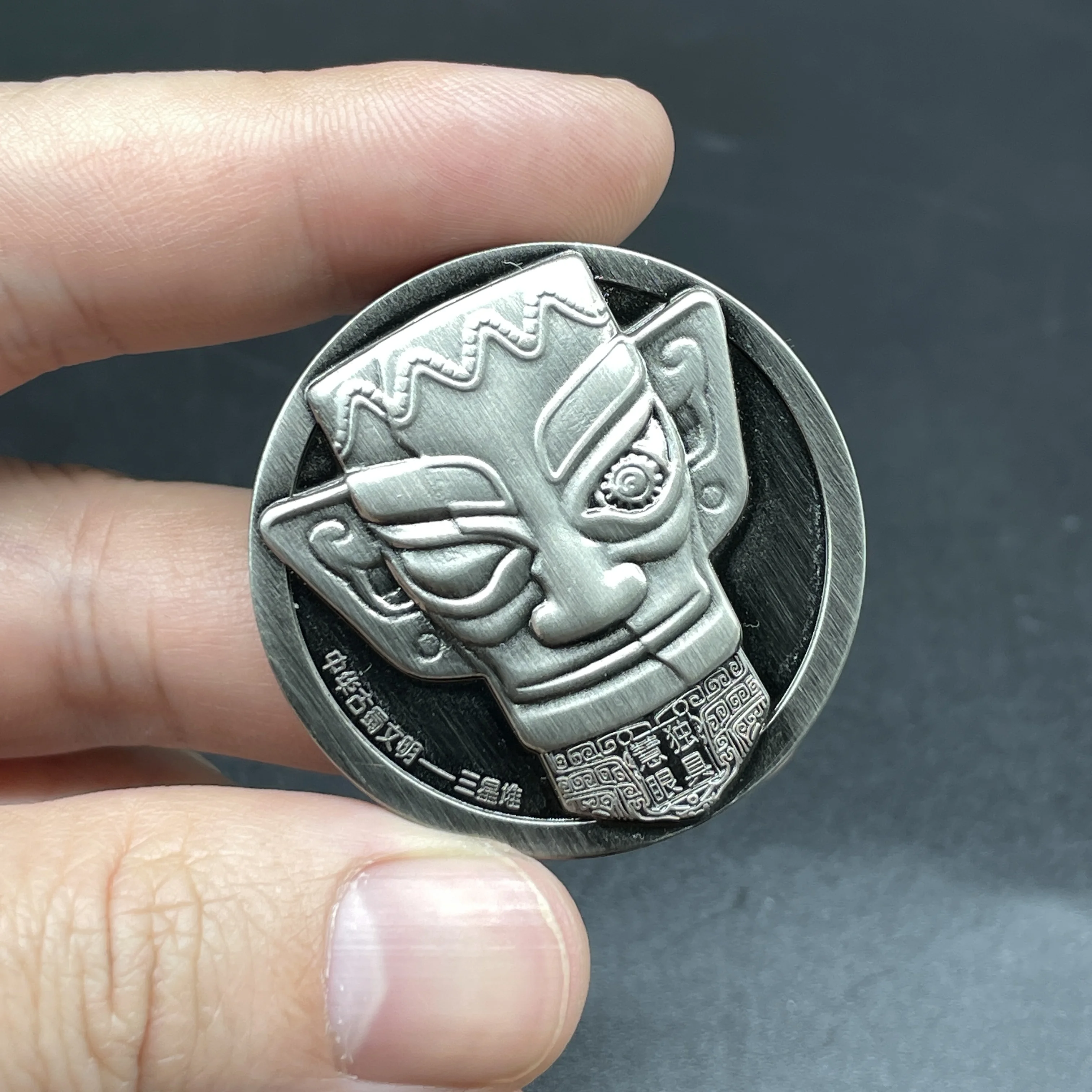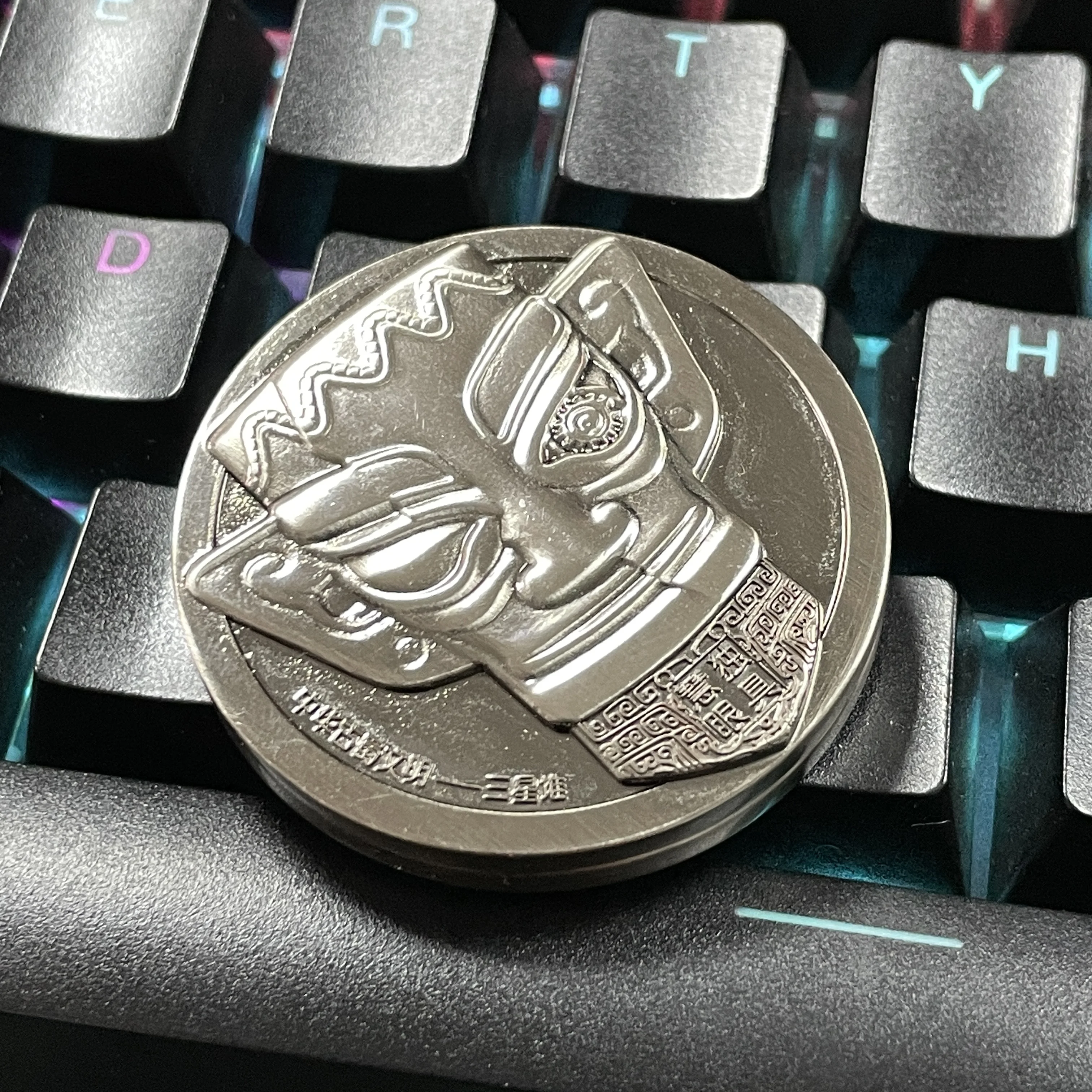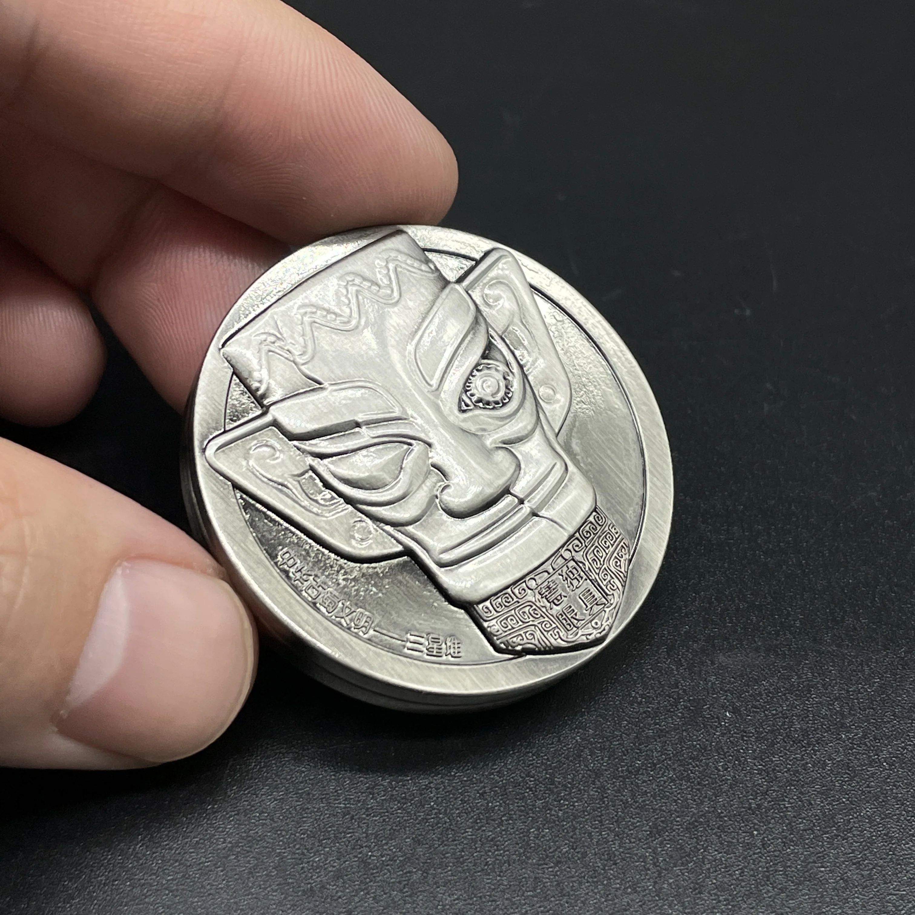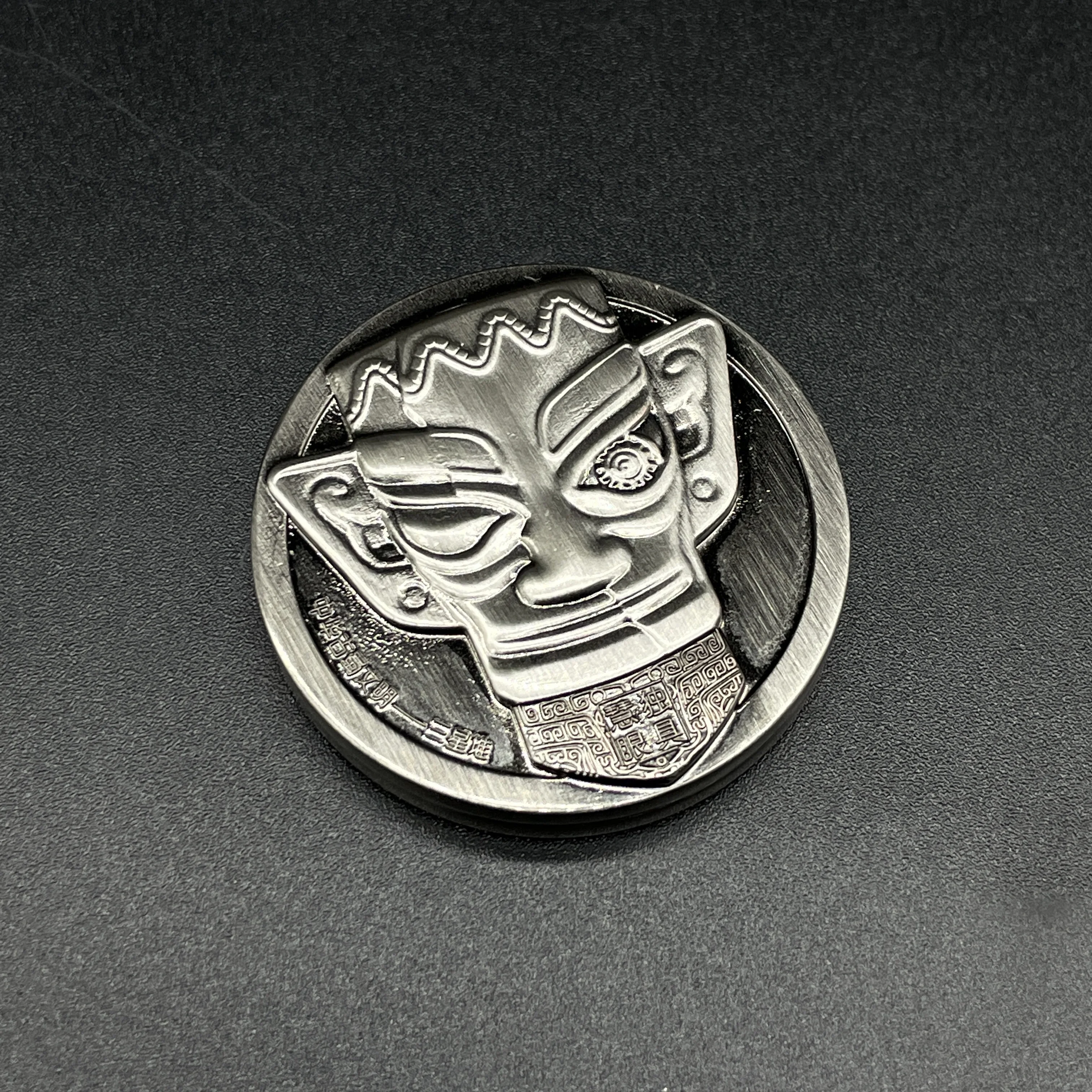 The fidget coin toy consists of two round metal bodies with rolling bearings. Magnets are embedded in each round metal body. The front and back of the fidget coin are engraved with the patterns of the relics of Sanxingdui, which has been called one of the greatest archaeological discoveries of the 20th century. The patterns are exquisitely carved. Every detail of the product has been precision machined, and the overall surface has been smoothed, making it comfortable to touch and smoother to play with.
