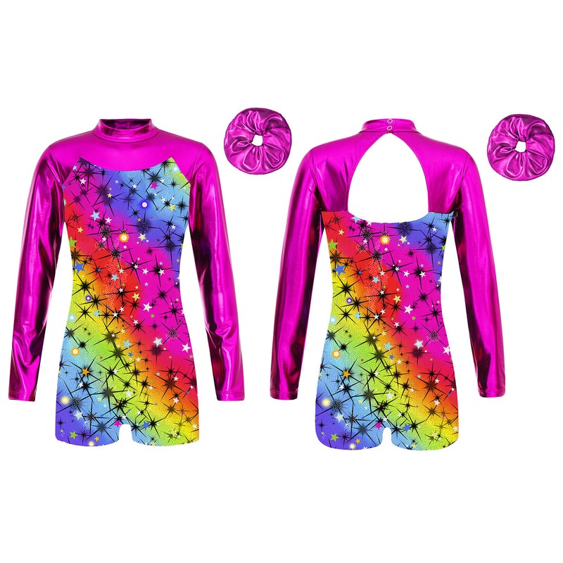 Girls Set Leotard Clothes Hair Tie Outfits Performance Jumpsuit Gymnastics