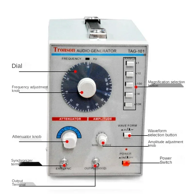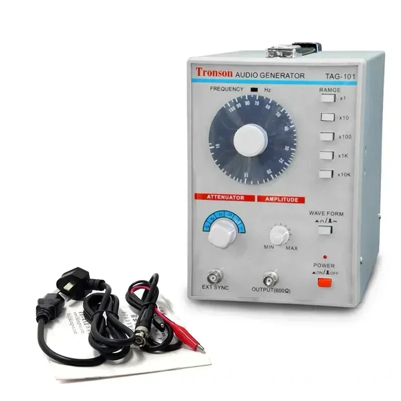 The TAG-101 low frequency signal generator can generate signals from 10 Hz to 1 M Hz, and the output distortion is very small. The output voltage gradually attenuates from 0 dB to 60 dB and gradually attenuates to 10 dB. As a signal source, it is welcomed by production lines, amateurs, maintenance, etc. At the same time, the output signal is synchronized with the terminal, and the control signal can accurately control the smallest strong signal.