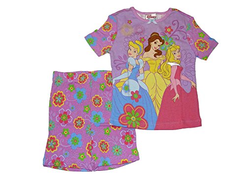 A soft and comfortable pajama shorts set. A colorful Disney Princess theme. Of a 100% cotton, to be worn snug-fitting.Features Belle, Cinderella and Aurora.