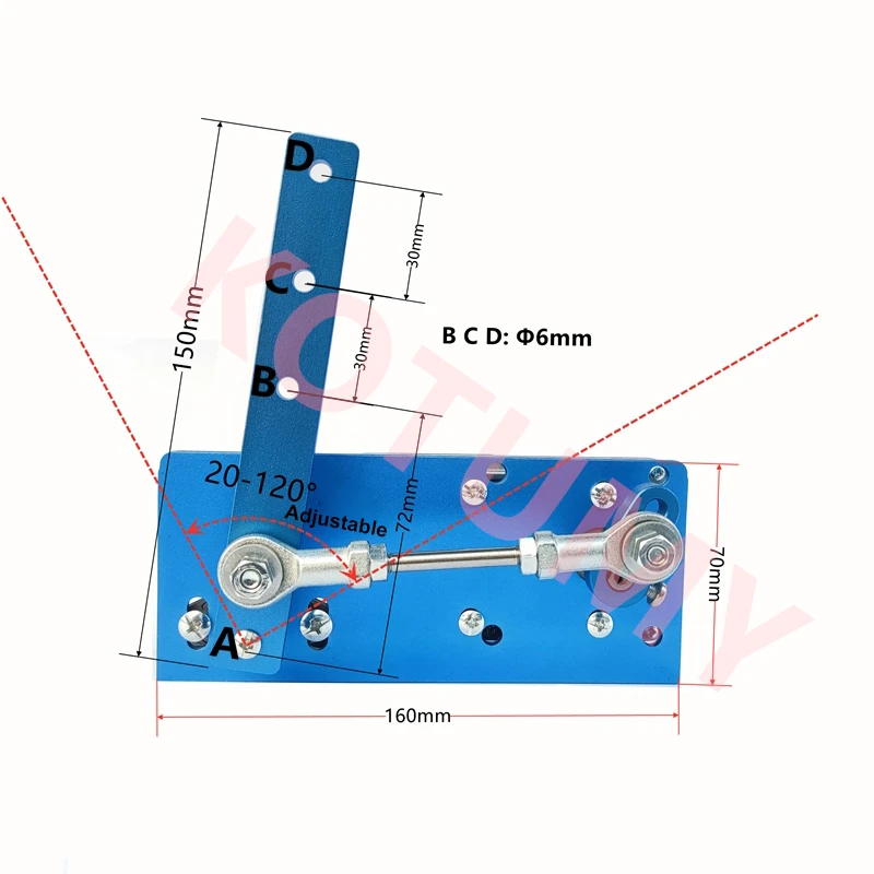 Swing angle: 20-120 degrees adjustable (Limit 10-130 degrees)