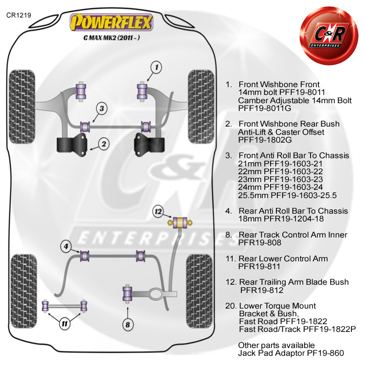 Powerflex Road Series Buchsen für vorderen Stabilisator und Chassis, 25,5 mm, für: Ford C-Max MK2 (ab 2011)