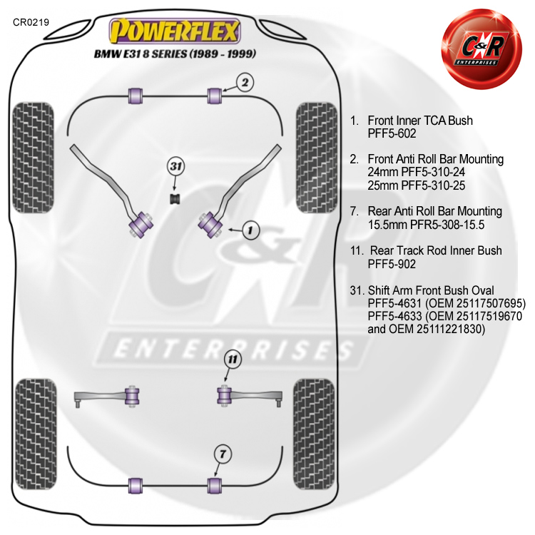 Powerflex Buchsen für vordere untere Verbindungsstange an Fahrgestell für: BMW 8er E31 (1989 - 1999)