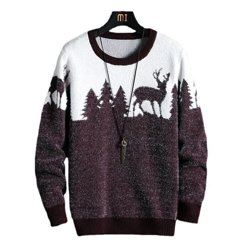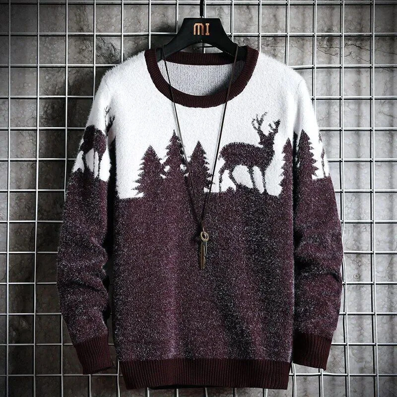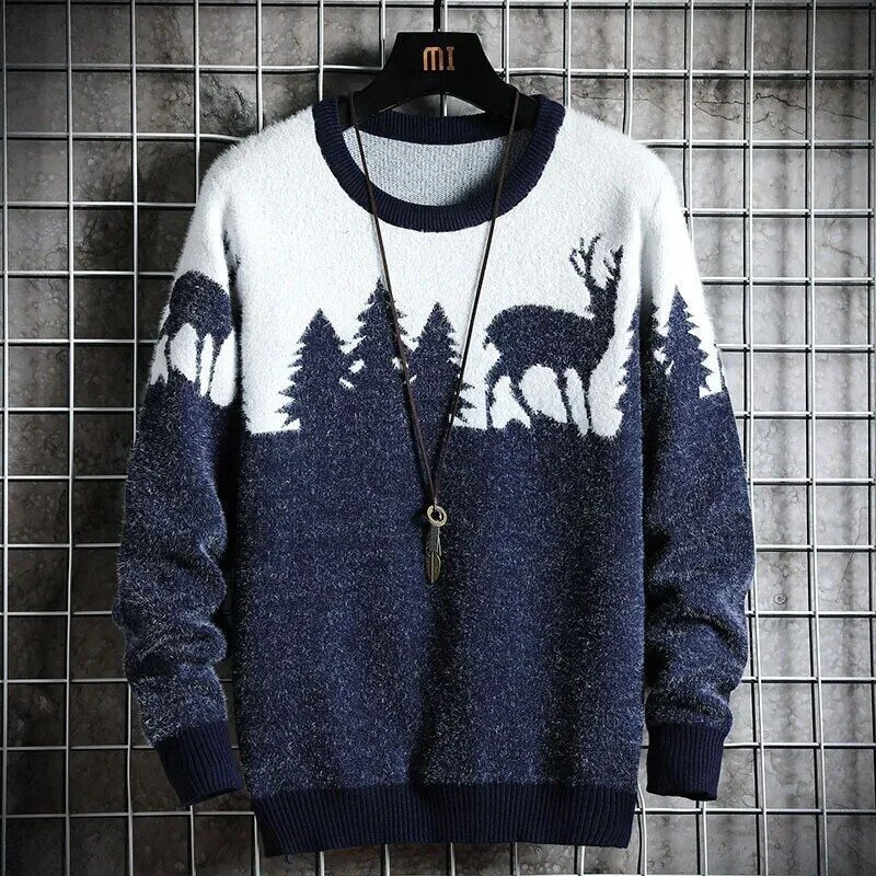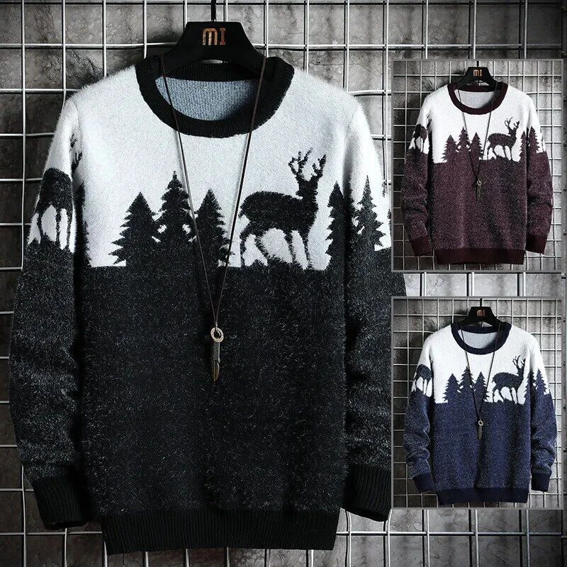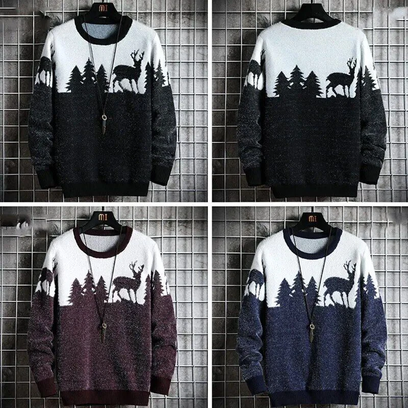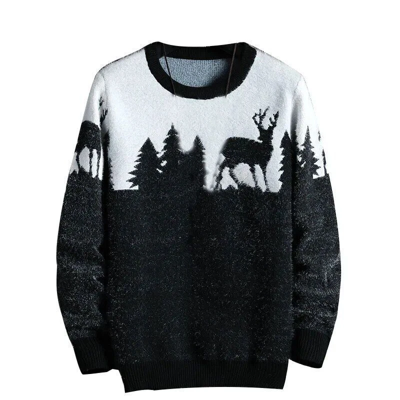 Christmas Sweater Men Pullovers Deer Print Sweaters Man Christmas Woman Sweater