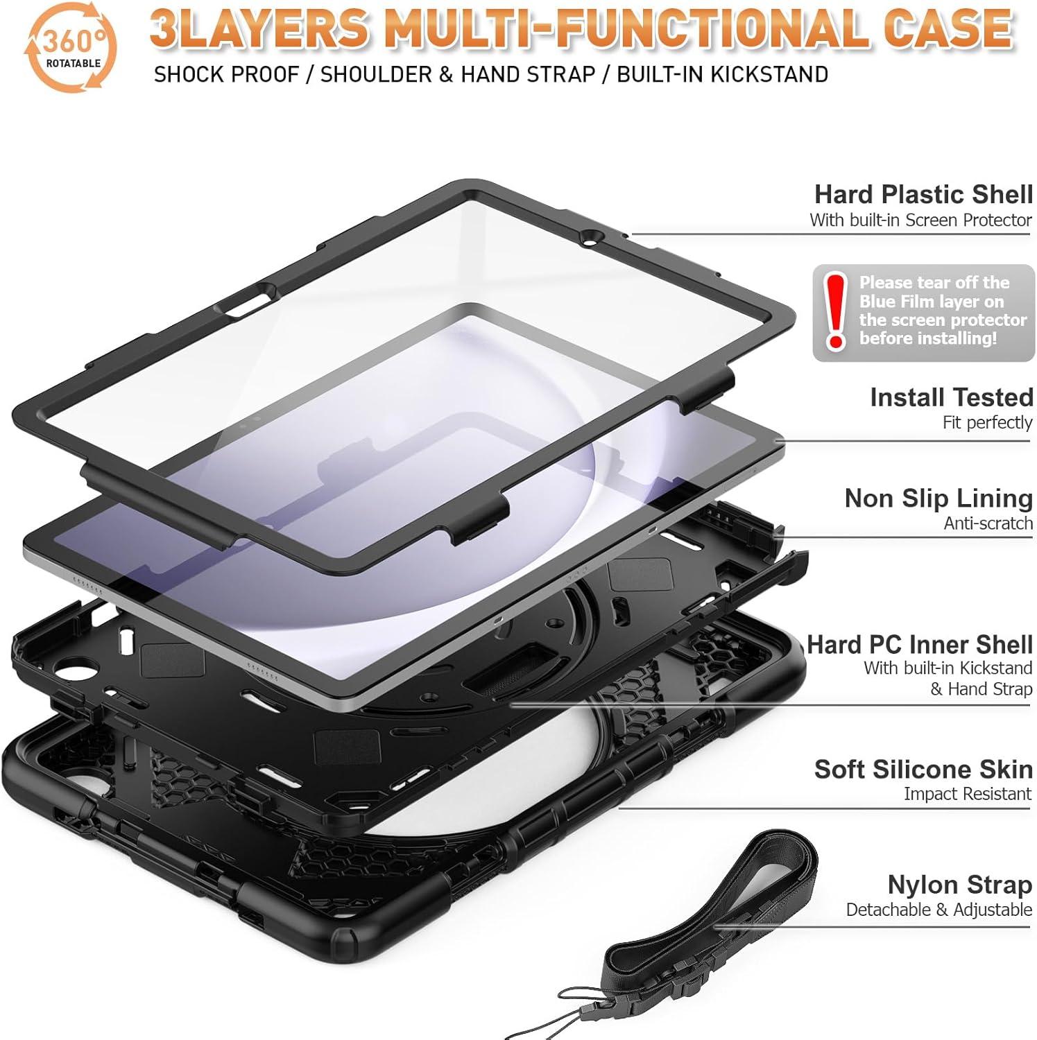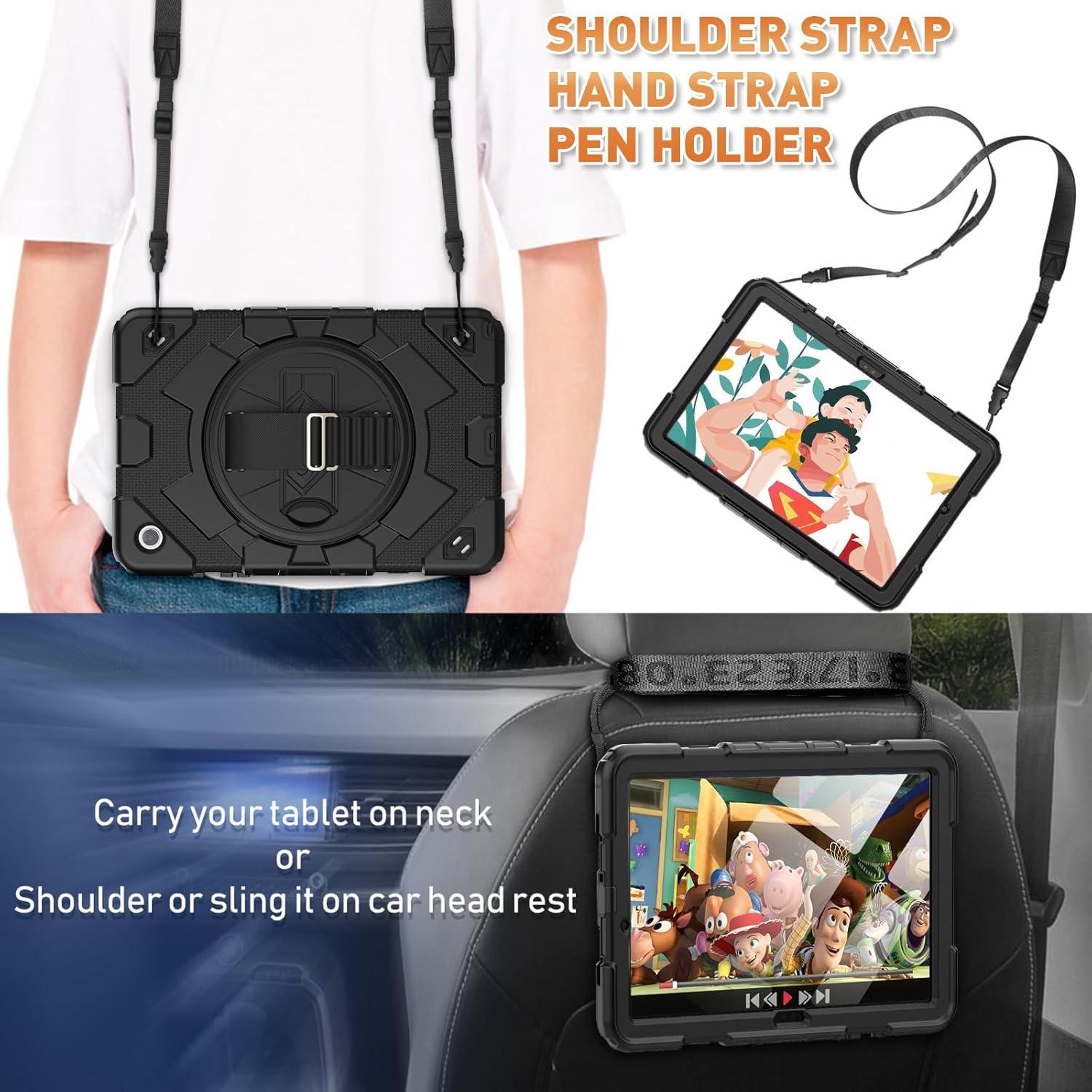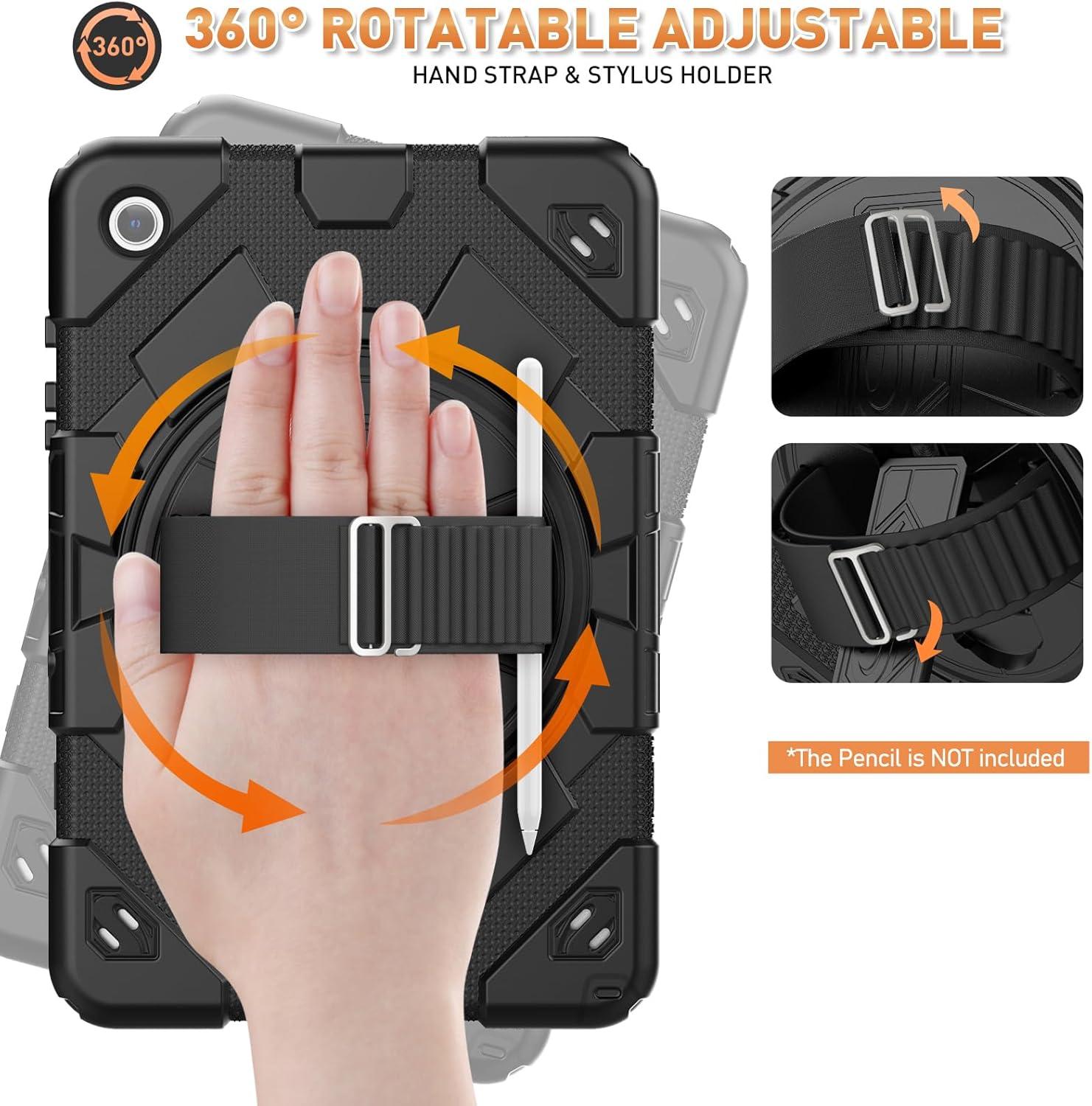 - [SHOULDER & HAND STRAP] The Samsung Galaxy Tab A9 8.7 inch 2023 case with a detachable shoulder strap, allowing you to free up your hands outdoors and effortlessly carry your tablet wherever you go. Additionally, featuring an inner hand strap within the cover, it enables you to securely grip your device while using it, protecting against accidental slips that could lead to damage. Stay hands-free and secure with this versatile case for ultimate convenience and peace of mind.
