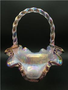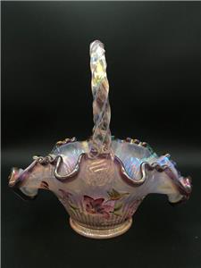 DescriptionUp for sale is a FENTON AZALEA SPIRAL OPTIC FRENCH OPALESCENT FAMILY SERIES ART GLASS BASKET: 1905-1995 (CELEBRATING OUR 90TH YEAR) HAND PAINTED + SIGNED (FLORAL DESIGN). It measures approximately 8 3/4" tall. This piece features magnificent coloring and superior intricate detail! This piece is in EXCELLENT CONDITION and would serve as a priceless gift or as a fantastic addition to your own collection!