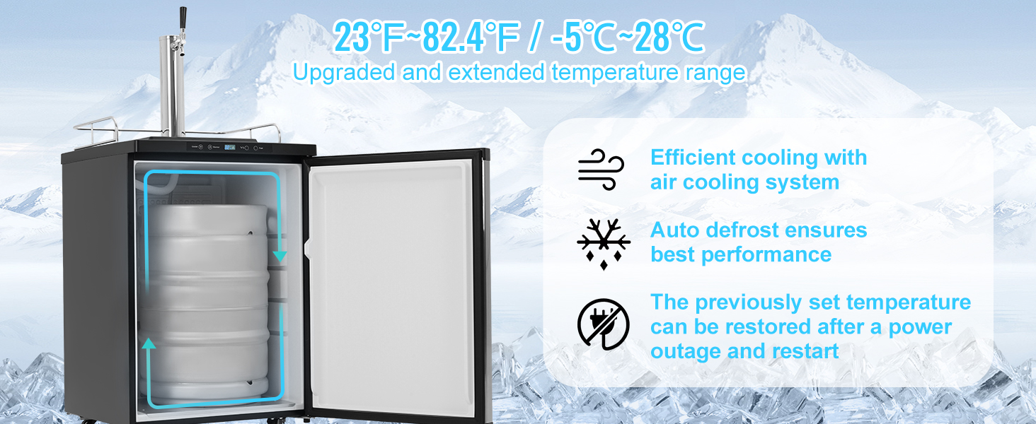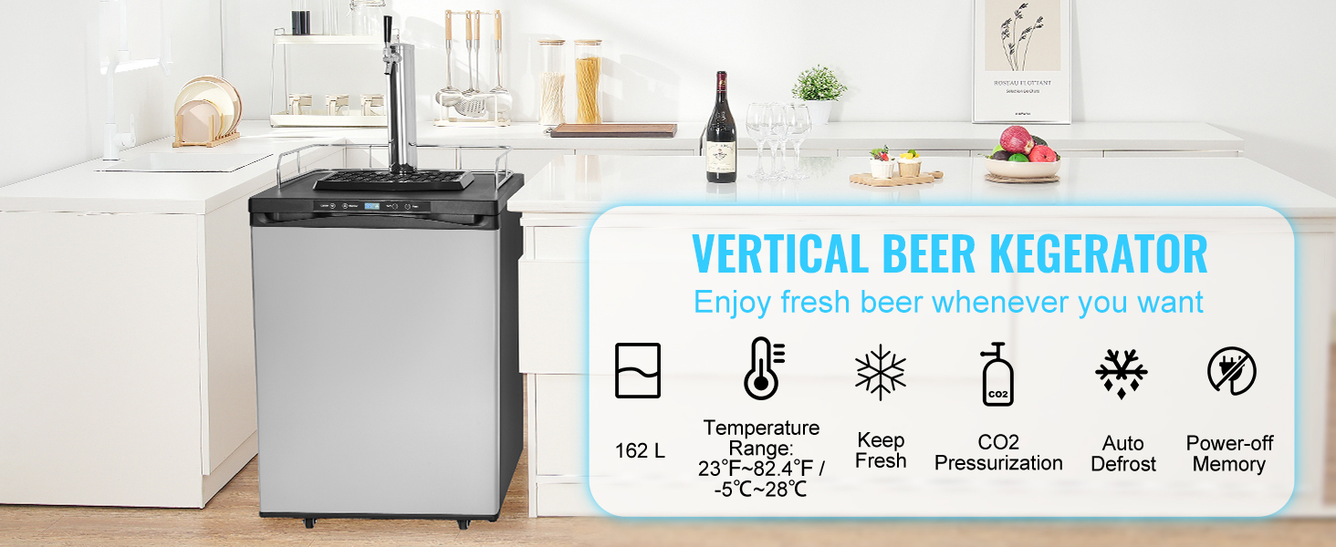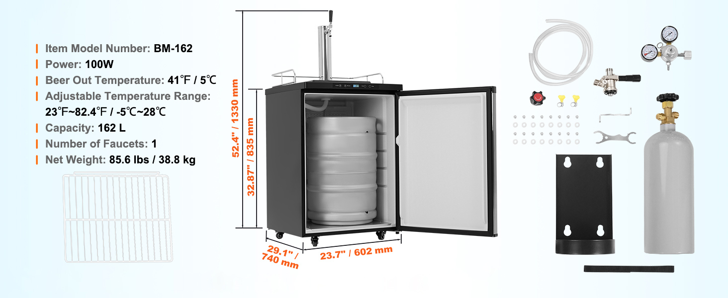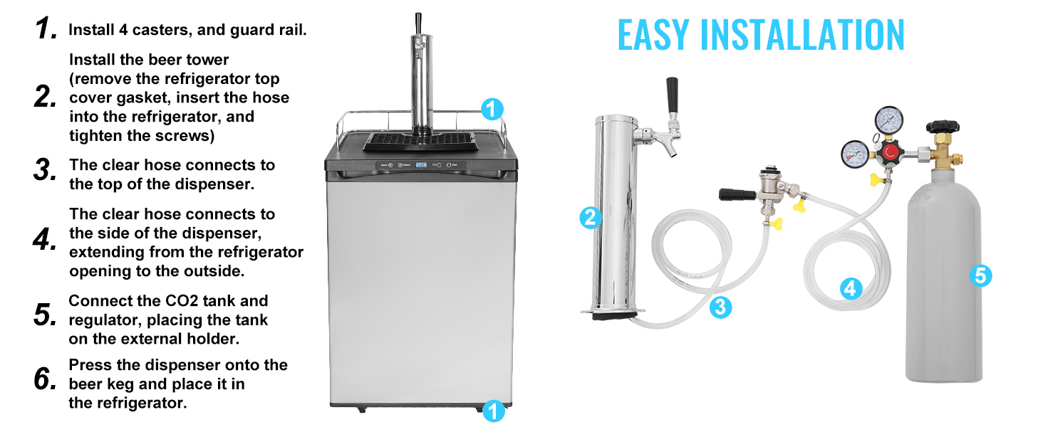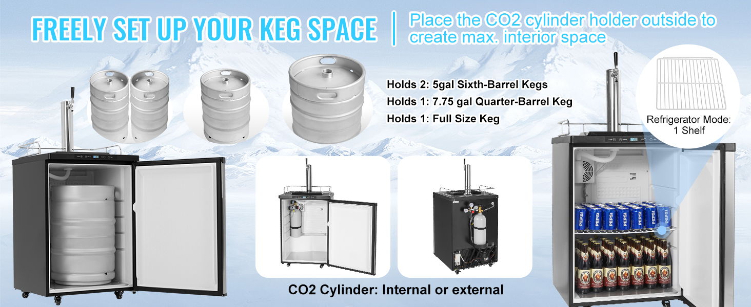 Our kegerator accommodates various keg sizes, allowing you to choose different capacities based on your needs. The CO2 cylinder(Which is empty and does not contain CO2 gas) injects CO2 into the beer and can be stored internally or externally, as desired.