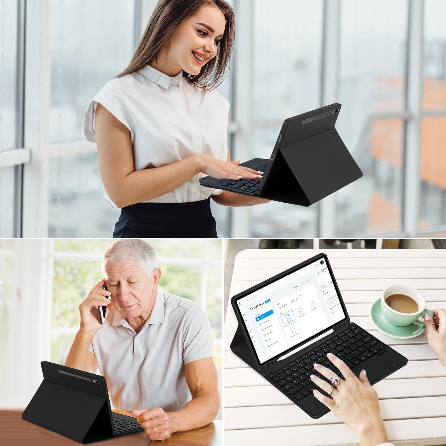 - Multi-Angle Adjustment, Detachable Keyboard: The protective case has 3 anti-slip grooves, supporting 100 degree/110 degree/120 degree angles, allowing you to use the tablet at a comfortable tilt angle and enjoy reading, drawing, watching, chatting, etc. The detachable Bluetooth keyboard can be used alone and can be removed when not in use, making it very convenient to carry