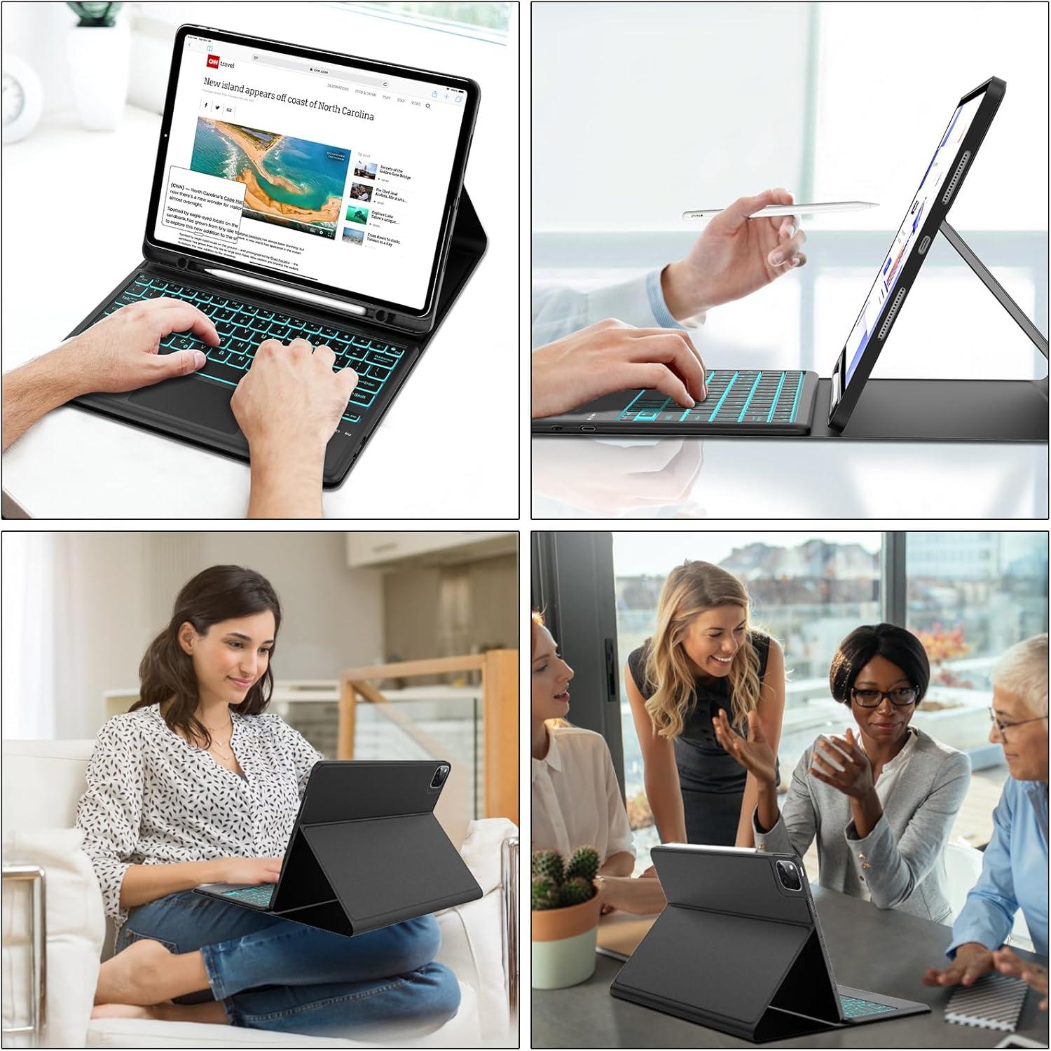 - 7-Color Backlight, Multi-Function Keyboard: The keyboard comes with RGB backlights, 7 adjustable backlight colors, breathing light backlight mode can be automatically switched. The backlit keyboard can be used in the dark, providing a comfortable typing experience. Rich function shortcut keys allow you to use iPad Air 13 inch/iPad Pro 12.9 2022-2018 more efficiently and comfortably, such as editing documents, navigating applications, and creating presentations