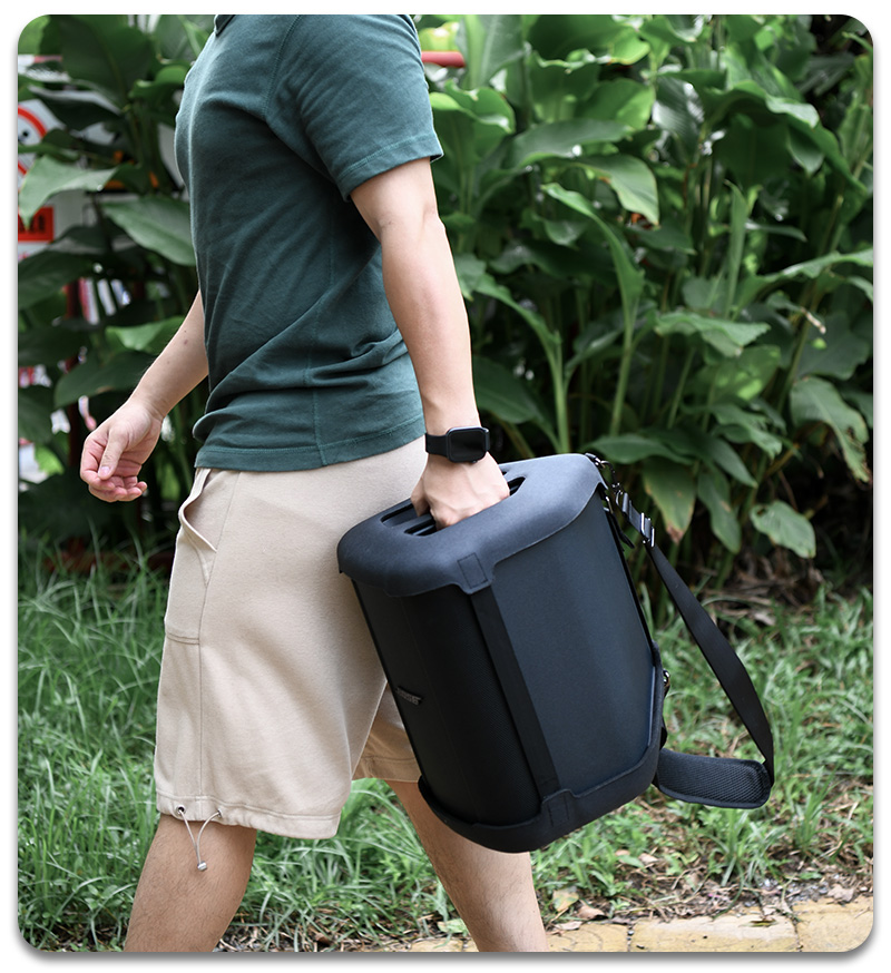 2.the outer layer of 300D Oxford cloth + middle EVA + inner suede design, can better protect the speaker and more durable;