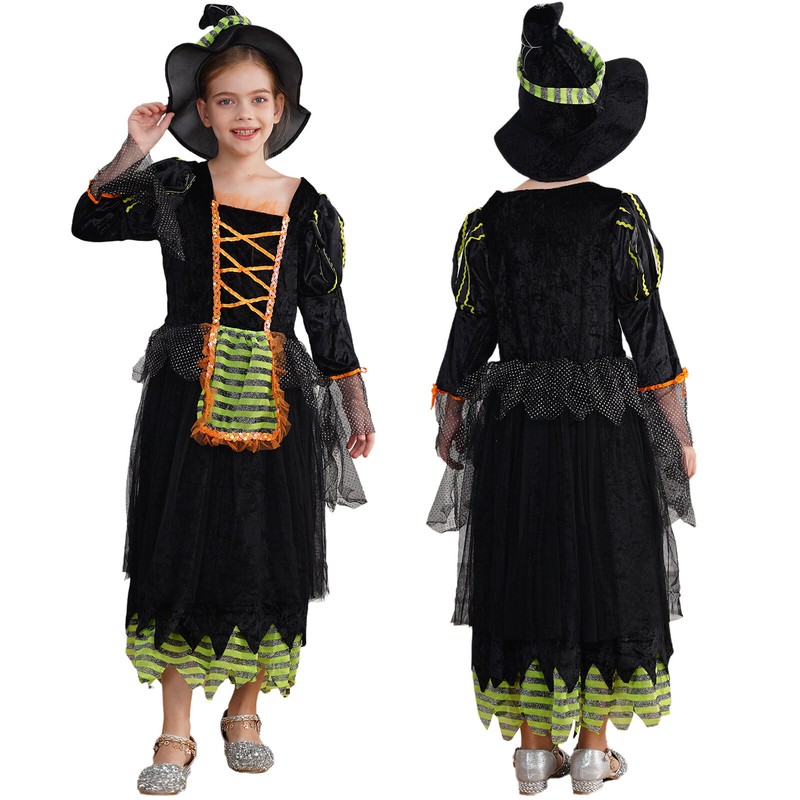 Girls Halloween Fancy Dress-Up Cosplay Costume Themed Party Witch Festival Prom