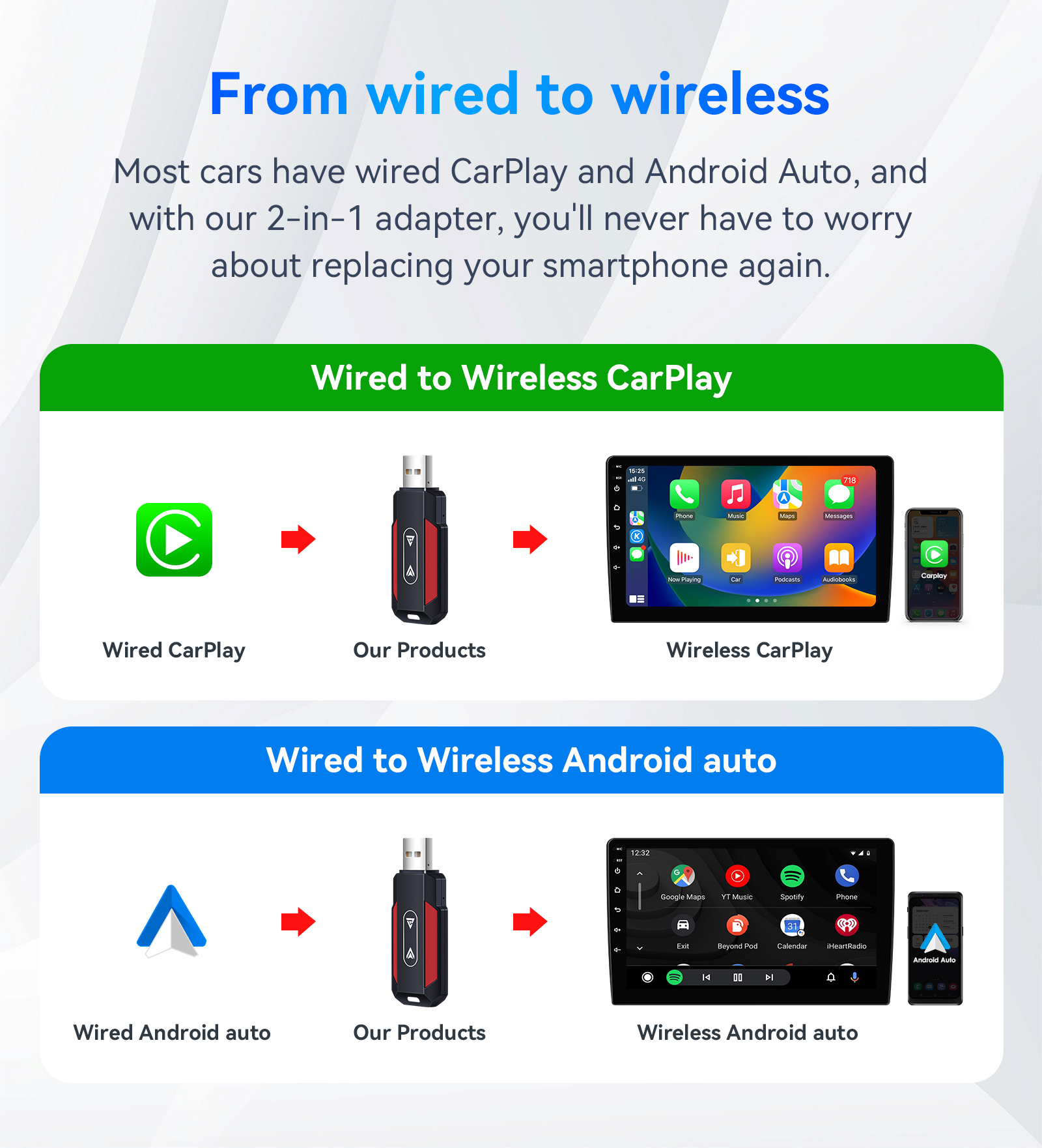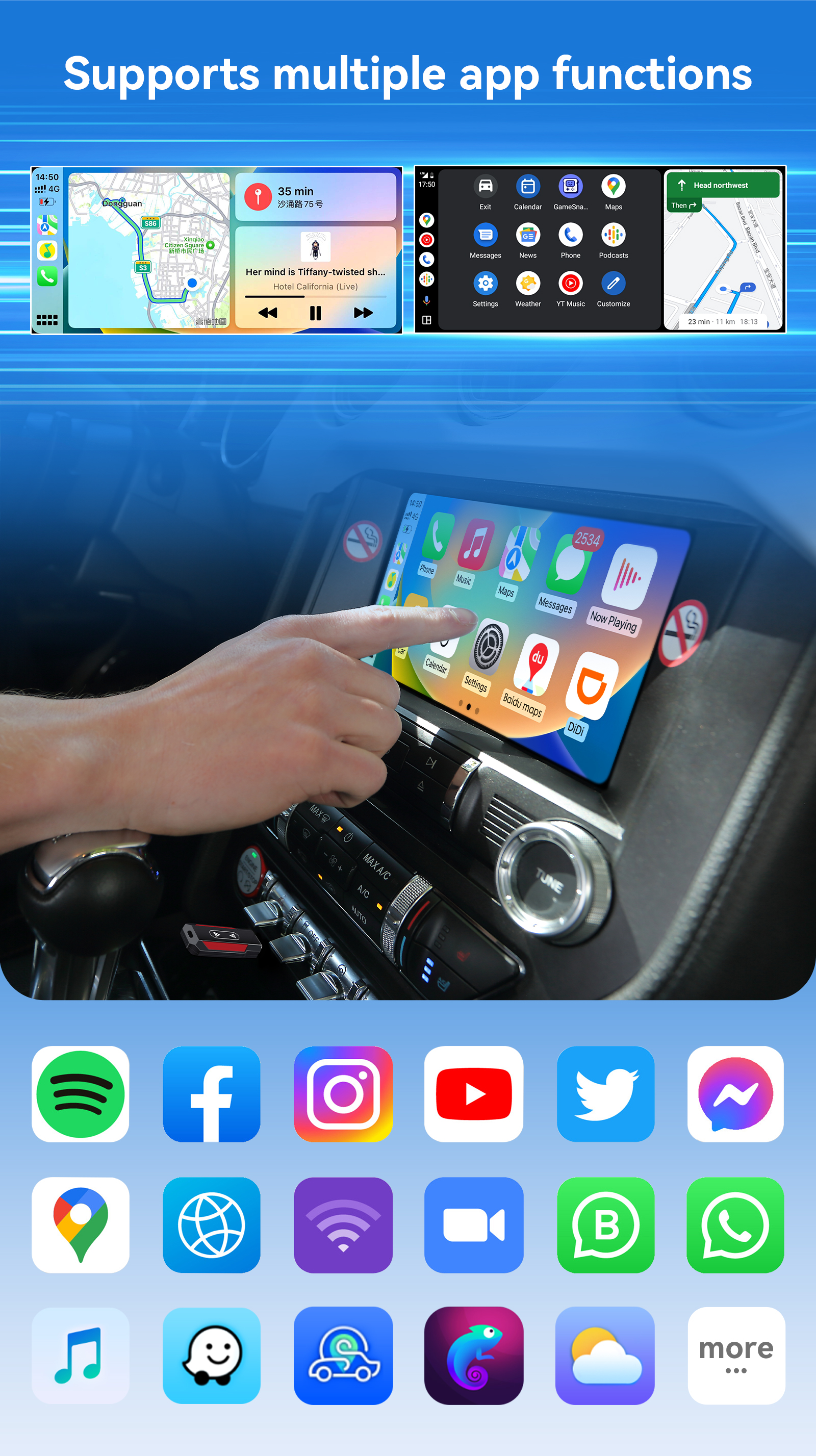 Directional control and view your phone on the car navigation screen with USB cable.