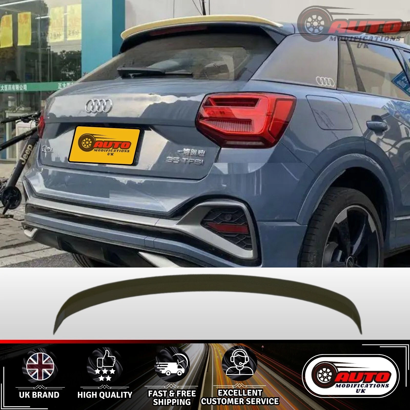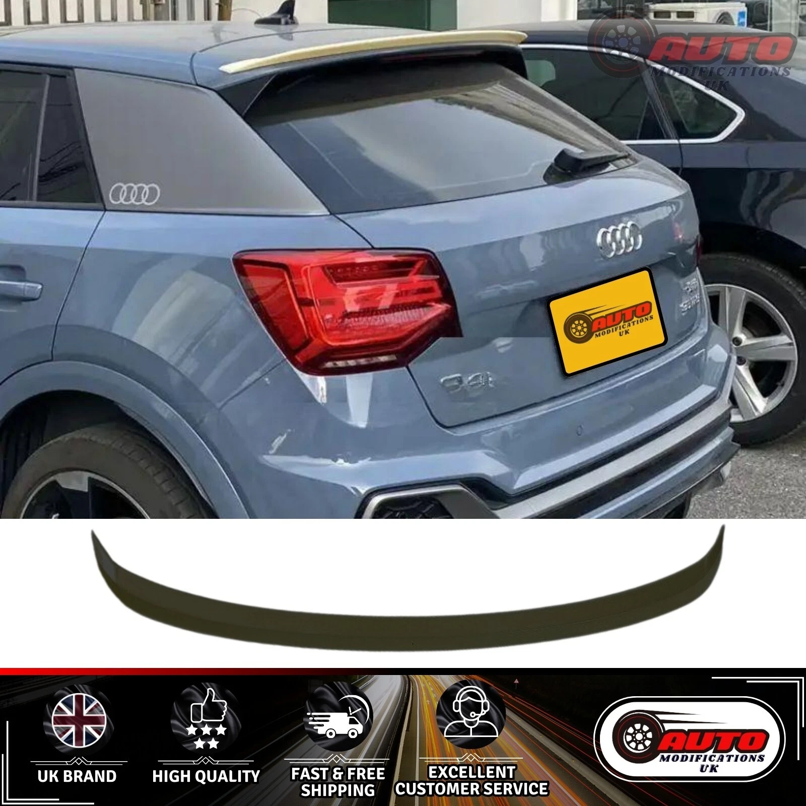 Audi Q2 SQ2 Rear Roof Wing Spoiler Lip Gloss Black SUV 4x4 2016+ UK SELLER