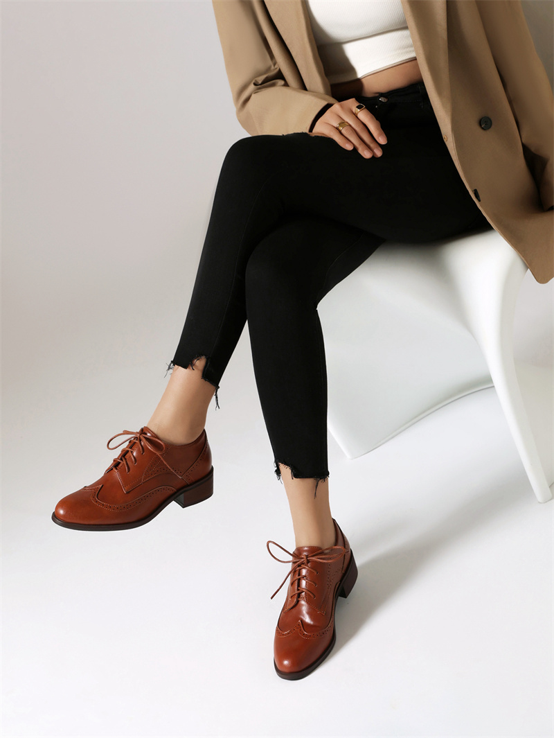 Retro Womens Lace UP Pointed Toe Carved Mid Heels Oxfords Brogues Shoes Fashion