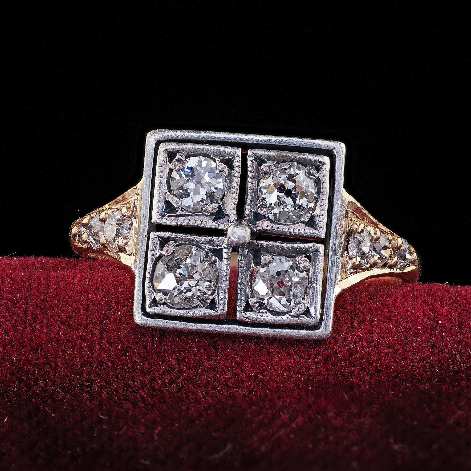 Beautiful Antique Victorian 14K Yellow Gold Silver Top Old Mine Diamond Ring. This gorgeous Victorian diamond ring is crafted in 14k yellow gold and silver top. The ring features old mine cut diamonds set in a checkboard pattern. The sides of the ring has old cut diamonds set going down the sides. The ring is in good condition and sits low on the finger.