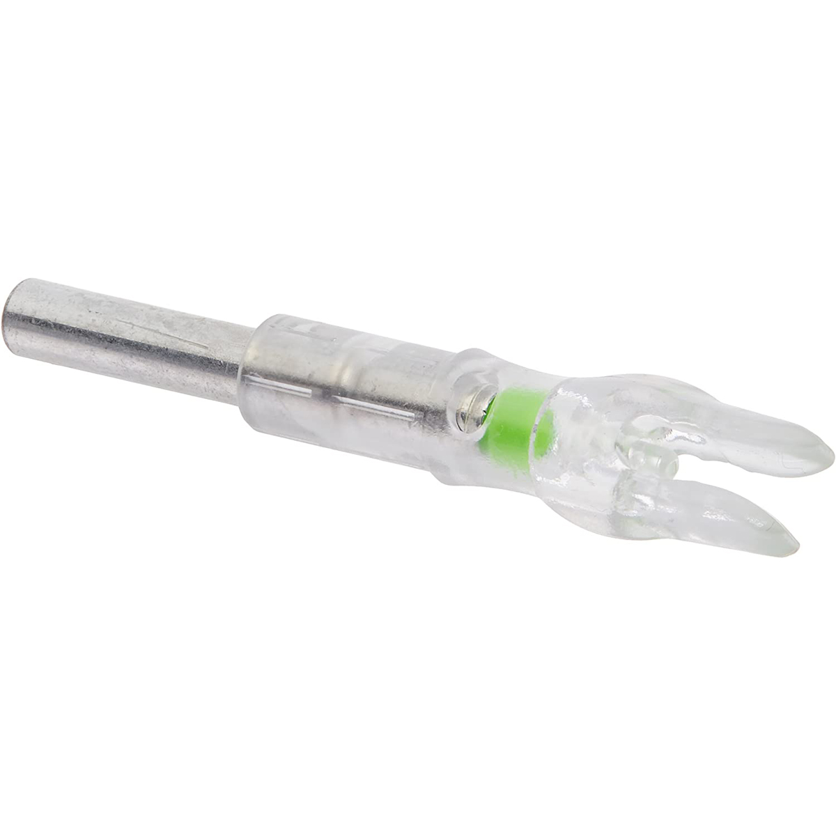 Nockturnal's Red Lighted X-Nock features exclusive patented linear switch that is design works every time, no wires or connections. The simple bowstring activated push-on switch easily switches off when done and offers an extended burn time of 20+ hours. This lighted nock is waterproof and weatherproof so you can use in any conditions. See your arrow impacts under any light and find that arrow on pass-through shots.