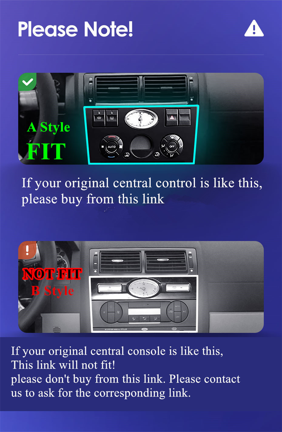 This link is only fit for style A. If your car is B style, please don't buy at this link. Please contact us for the corresponding link. |