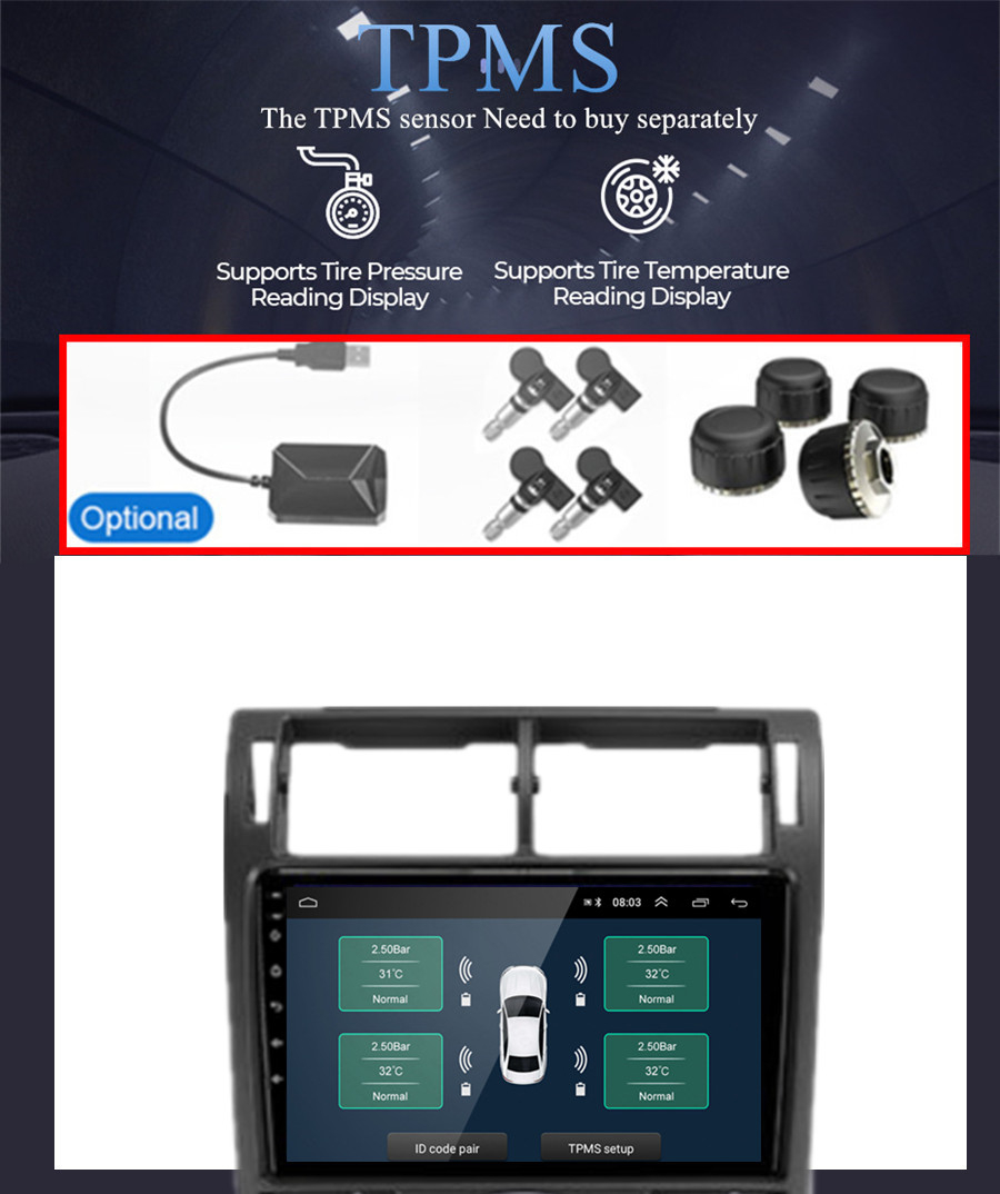 - Textbook: Could change font, font color, background color, bookmark, reading E-book while listening music - Photo Viewer: Support JPS, BMP, PNG, GIF etc. format. play by revolve, Powerpoint Support 4096*4096 Pixels - Wallpapers: 5 live wallpapers, 17 standard wallpapers, support DIY wallpaper from Gallery - APK Installer: Support Android Package installer - Support Torque Pro(OBD2 &Car): Yes, you can connect a Bluetooth OBD2( Bluetooth version ≥ 4.2 ) Scanner Tool to use this function - Support Mirror Link function: Yes, support screen mirroring from iPhone and android smartphone - Support TPMS: YES (Not Included) -Support Steering Wheel Control;Yes |