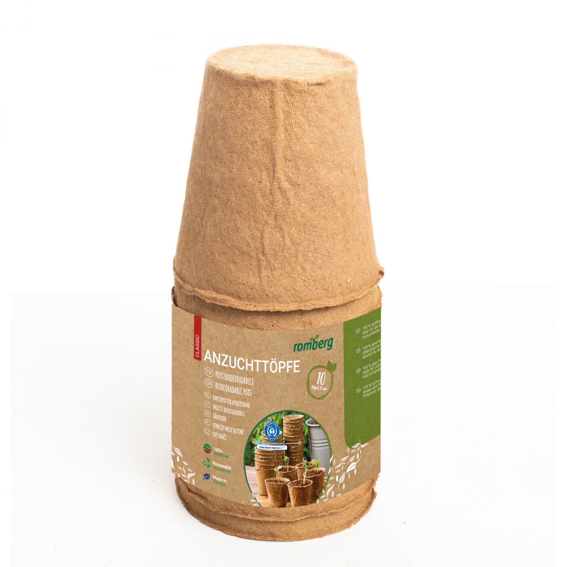 Romberg Anzuchttöpfe sind 100% torffrei und aus Zellulose hergestellt.