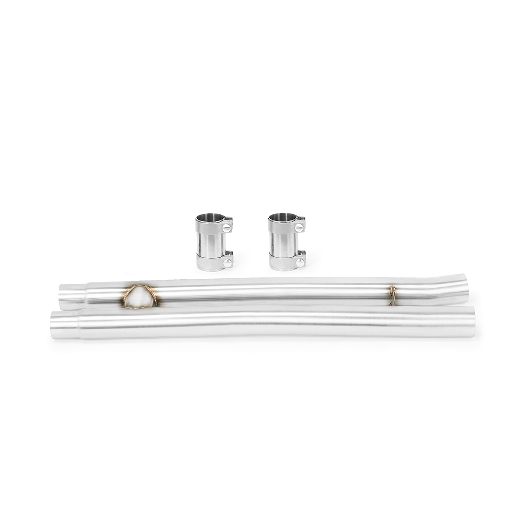 H-Pipe, fits Ford Mustang GT 2015+ Pump up the volume of your 2015+ Ford Mustang GT exhaust! The full 304 stainless steel, mandrel-bent construction provides optimal flow and excellent appearance. If you want the best in exhaust performance, pair this GT X or H-pipe with the Mishimoto 2015+ Ford Mustang GT Axleback exhaust. The Mishimoto 2015+ Ford Mustang GT X and H-Pipes fit both manual and automatic transmission vehicles, and just like all Mishimoto Mustang parts, comes with the Mishimoto Lifetime Warranty. Cut and clamp design specifically for the 2015+ Ford Mustang GT Replaces the stock exhaust resonator with a free-flowing H pipe section Full 304 stainless steel mandrel-bent construction