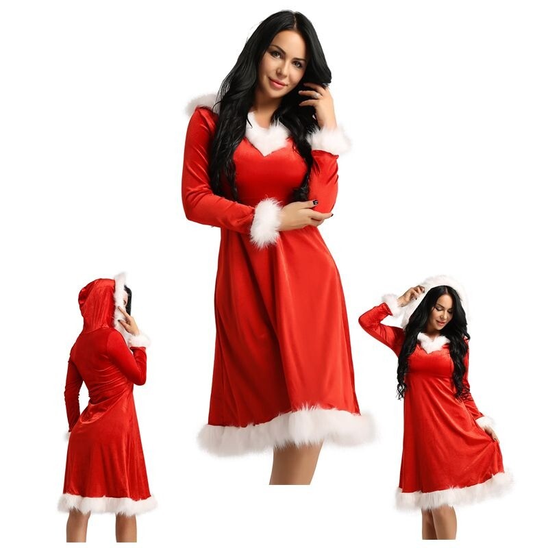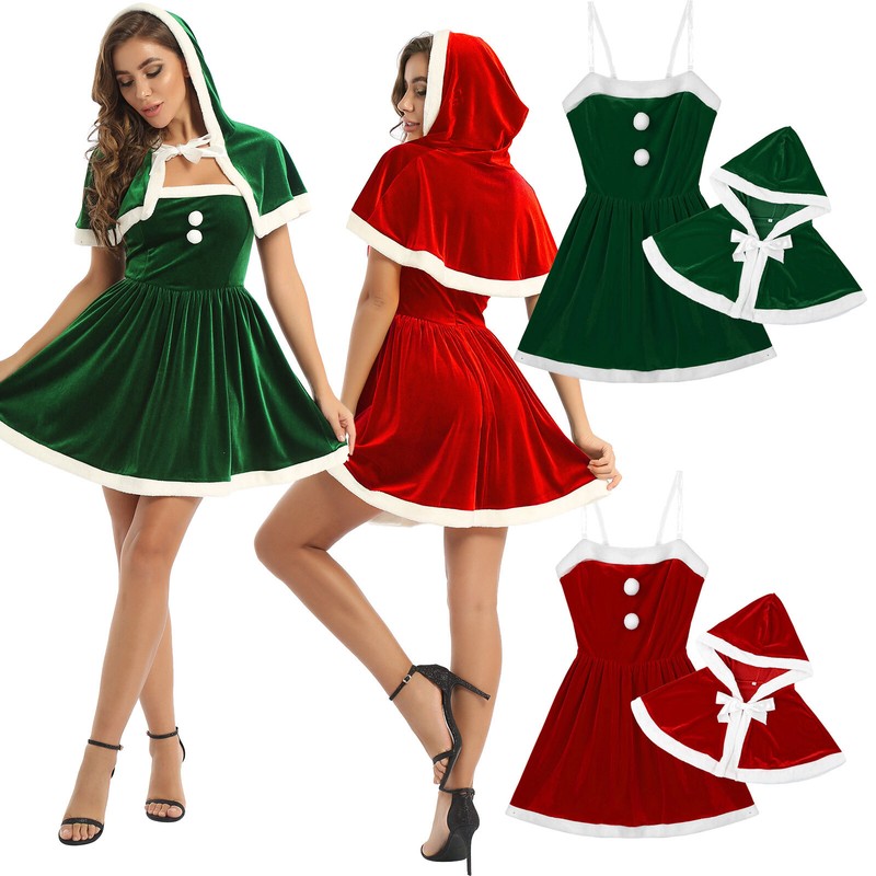 Womens Christmas Elf Costumes Santa Claus Velvet Dress Party Cosplay Dress Suit